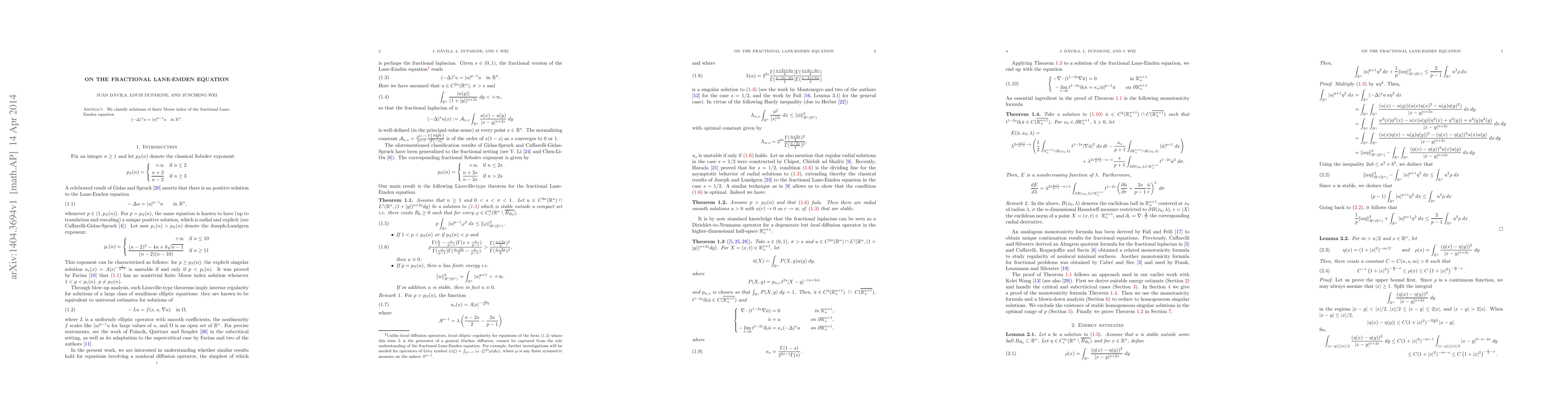 Summary: This paper classifies solutions of the fractional Lane-Emden equation that have a finite Morse index, providing insights into the behavior and properties of these solutions. The study focuses on the structural characteristics and implications for the equation's solutions.