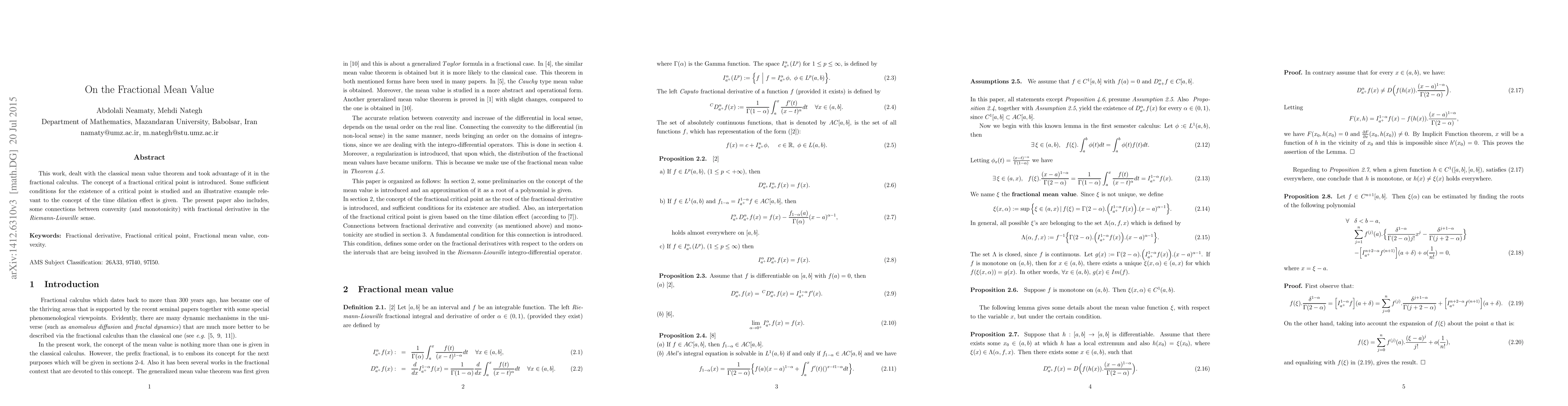 This paper explores the connection between the classical mean value theorem and fractional calculus, introducing a concept called the fractional critical point and investigating its existence conditions and connections to convexity and time dilation effects.