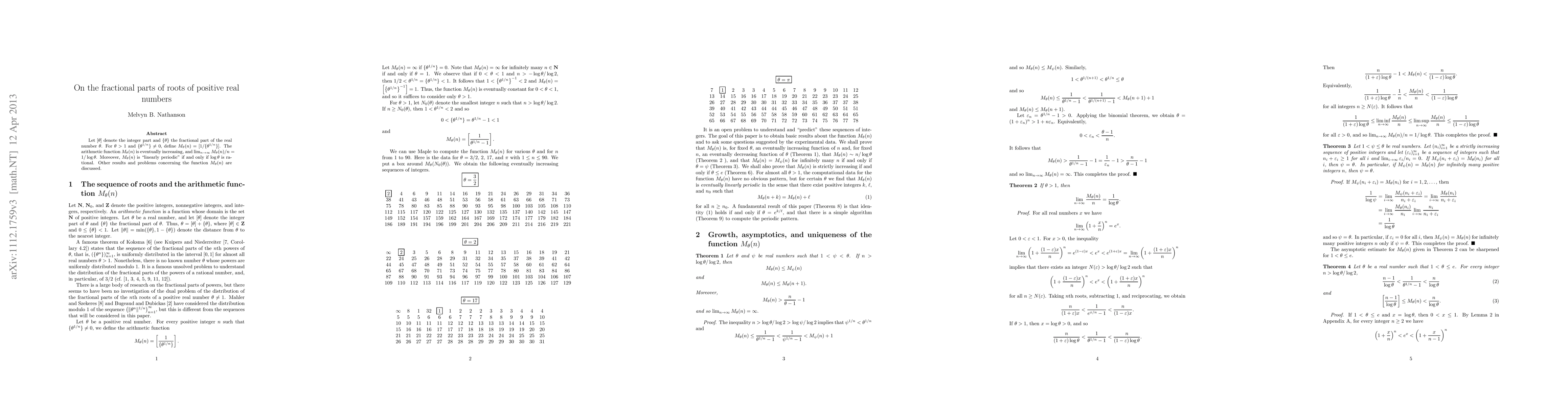 Let [\theta] denote the integer part and {\theta} the fractional part of the real number \theta. For \theta > 1 and {\theta^{1/n}} \neq 0, define M_{\theta}(n) = [1/{\theta^{1/n}}]. The arithmetic function M_{\theta}(n) is eventually increasing, and \lim_{n\rightarrow \infty} M_{\theta}(n)/n = 1/\log \theta. Moreover, M_{\theta}(n) is "linearly periodic" if and only if \log \theta is rational. Other results and problems concerning the function M_{\theta}(n) are discussed.