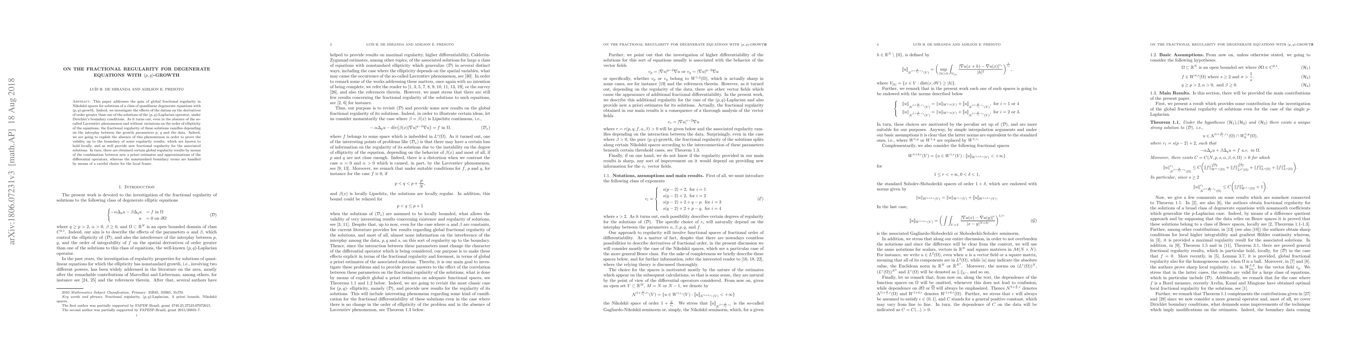 This paper explores global fractional regularity for solutions of quasilinear degenerate equations with $(p,q)$-growth, demonstrating how the data influences higher-order derivatives of solutions, and proving new regularity results up to the boundary using a combination of a priori estimates and operator approximations.