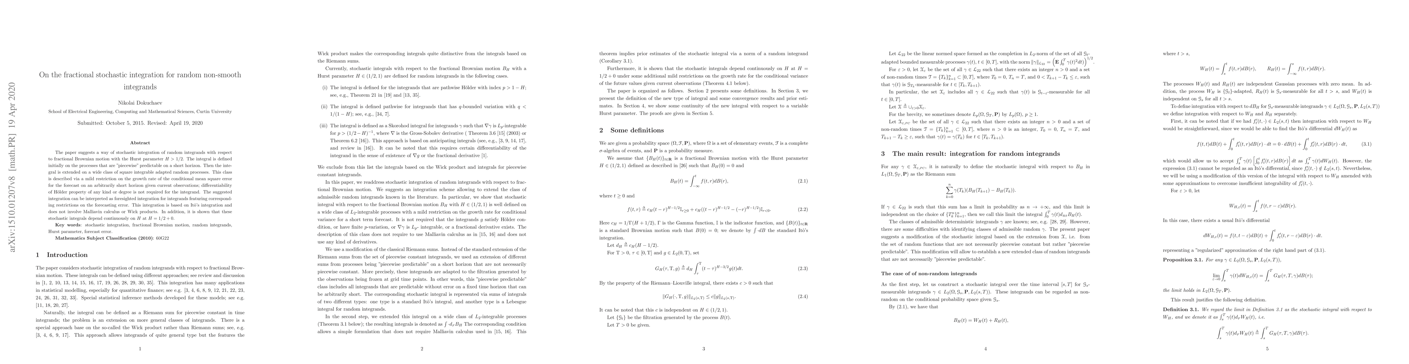 This paper introduces a new method for stochastic integration of non-smooth random integrands using fractional Brownian motion, allowing for continuous dependence on the Hurst parameter H at H=1/2+0.