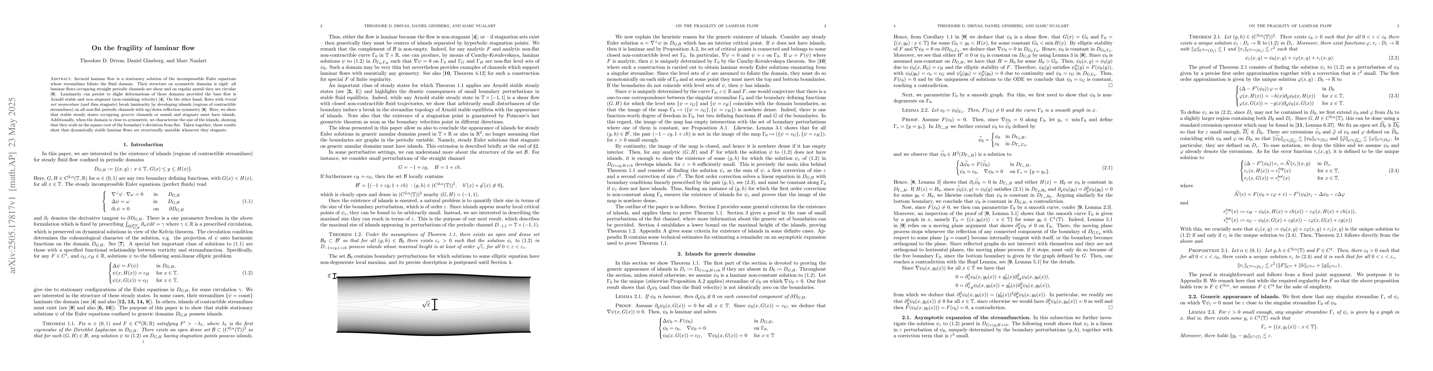 The paper demonstrates that stagnating stable steady states in generic channels or annuli inevitably contain islands, providing a new perspective on the fragility of laminar flow stability.