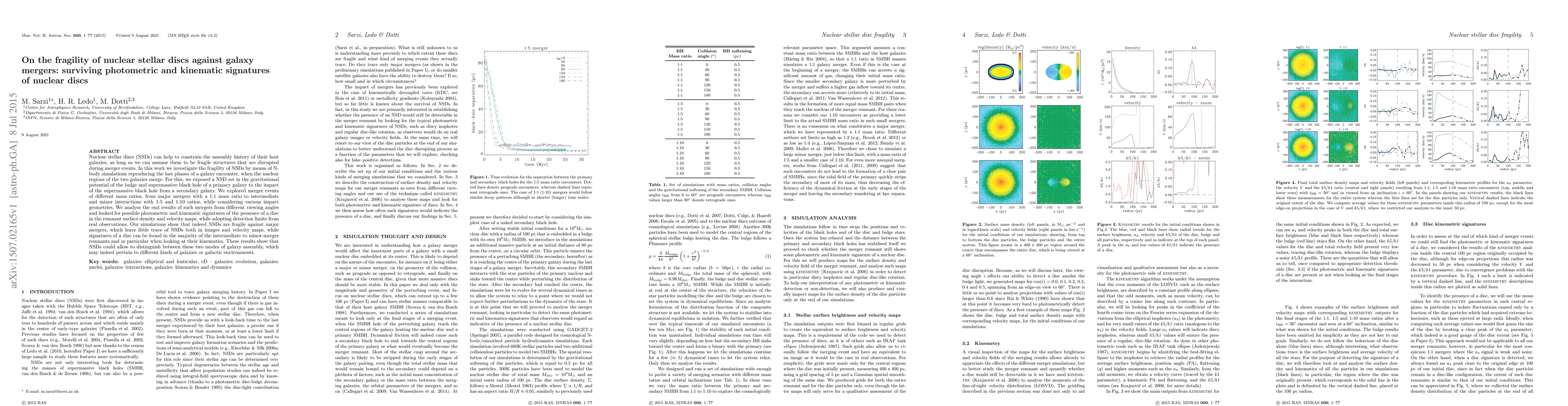 Nuclear stellar discs (NSDs) can help to constrain the assembly history of their host galaxies, as long as we can assume them to be fragile structures that are disrupted during merger events. In this work we investigate the fragility of NSDs by means of N-body simulations reproducing the last phases of a galaxy encounter, when the nuclear regions of the two galaxies merge. For this, we exposed a NSD set in the gravitational potential of the bulge and supermassive black hole of a primary galaxy to the impact of the supermassive black hole from a secondary galaxy. We explored merger events of different mass ratios, from major mergers with a 1:1 mass ratio to intermediate and minor interactions with 1:5 and 1:10 ratios, while considering various impact geometries. We analyse the end results of such mergers from different viewing angles and looked for possible photometric and kinematic signatures of the presence of a disc in the remnant surface density and velocity maps, while adopting detection limits from real observations. Our simulations show that indeed NSDs are fragile against major mergers, which leave little trace of NSDs both in images and velocity maps, while signatures of a disc can be found in the majority of the intermediate to minor-merger remnants and in particular when looking at their kinematics. These results show that NSDs could allow to distinguish between these two modes of galaxy assembly, which may indeed pertain to different kinds of galaxies or galactic environments.
