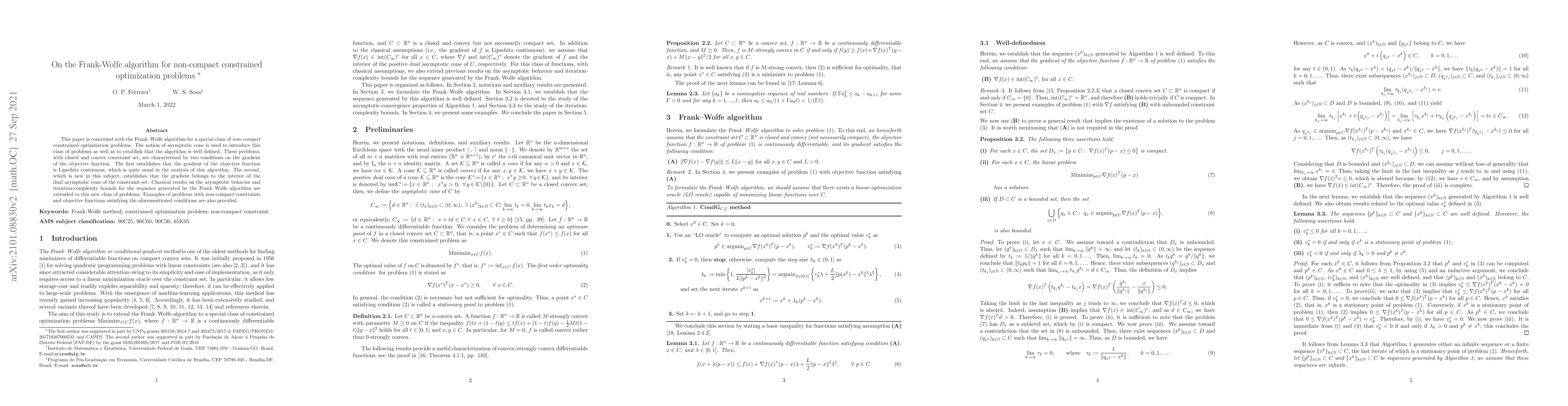 This paper extends the Frank-Wolfe algorithm to non-compact constrained optimization problems, utilizing the concept of asymptotic cones. It introduces new conditions on the objective function's gradient and extends classical results on the algorithm's performance for this class of problems.