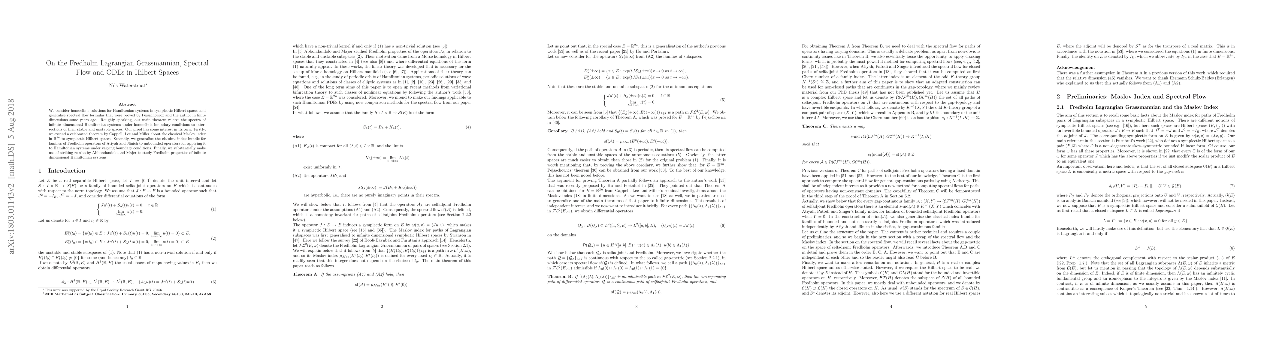 This paper generalizes spectral flow formulas for infinite-dimensional Hamiltonian systems under homoclinic boundary conditions to relate spectra with intersections of stable and unstable spaces. It extends classical theorems on index bundles to unbounded operators.