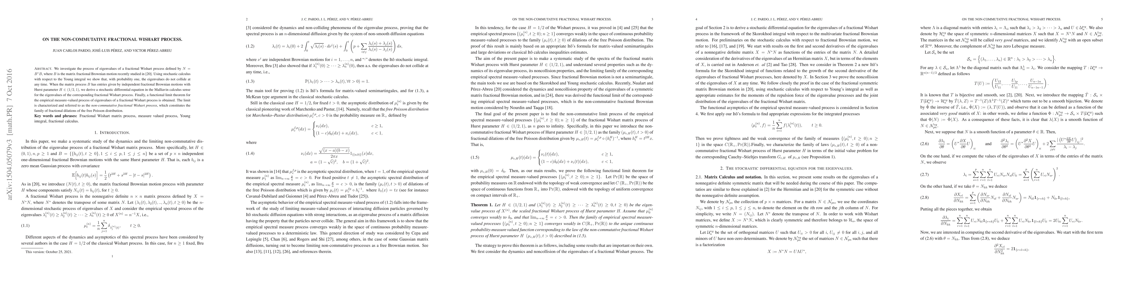 We investigate the process of eigenvalues of a fractional Wishart process defined as N=B*B, where B is a matrix fractional Brownian motion recently studied by Nualart and P\'erez-Abreu. Using stochastic calculus with respect to the Young integral we show that the eigenvalues do not collide at any time with probability one. When the matrix process B has entries given by independent fractional Brownian motions with Hurst parameter $H\in(1/2,1)$ we derive a stochastic differential equation in a Malliavin calculus sense for the eigenvalues of the corresponding fractional Wishart process. Finally a functional limit theorem for the empirical measure-valued process of eigenvalues of a fractional Wishart process is obtained. The limit is characterized and referred to as the free fractional Wishart process which constitutes the family of fractional dilations of the free Poisson distribution.