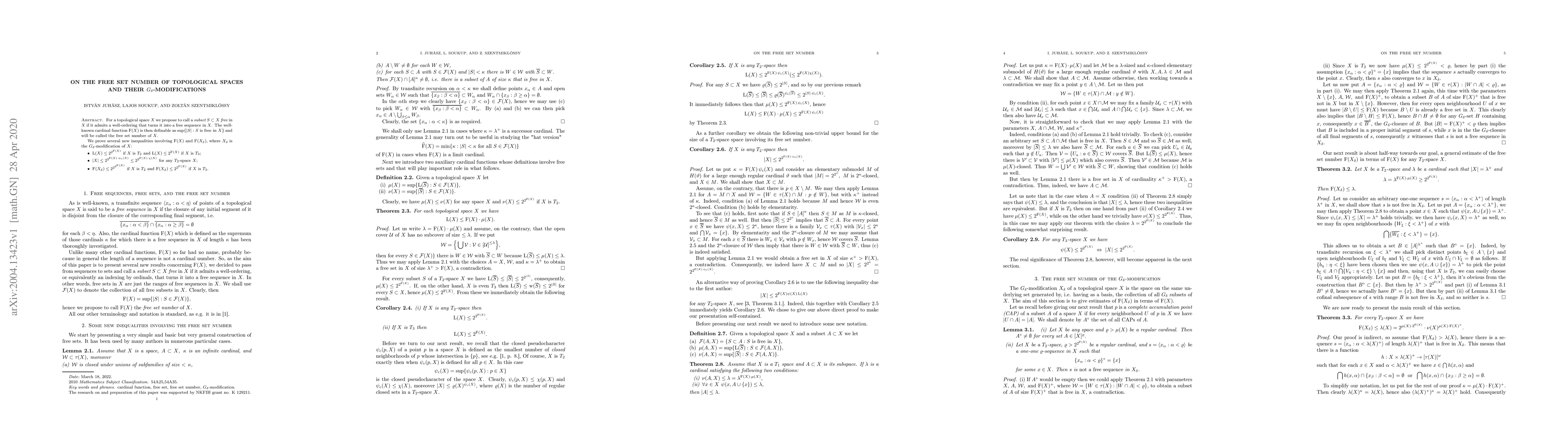 For a topological space $X$ we propose to call a subset $S \subset X$ "free in $X$" if it admits a well-ordering that turns it into a free sequence in $X$. The well-known cardinal function $F(X)$ is then definable as $\sup\{|S| : S \text{ is free in } X\}$ and will be called the free set number of $X$. We prove several new inequalities involving $F(X)$ and $F(X_\delta)$, where $X_\delta$ is the $G_{\delta}$-modification of $X$: $\bullet$ $L(X) \le 2^{2^{F(X)}}$ if $X$ is $T_2$ and $L(X)\le 2^{F(X)}$ if $X$ is $T_3$; $\bullet$ $|X|\le 2^{2^{F(X) \cdot \psi_c(X)}} \le 2^{2^{F(X) \cdot \chi(X)}}$ for any $T_2$-space $X$; $\bullet$ $F(X_{\delta})\le 2^{2^{2^{F(X)}}}$ if $X$ is $T_2$ and $F(X_{\delta})\le 2^{2^{F(X)}}$ if $X$ is $T_3$.