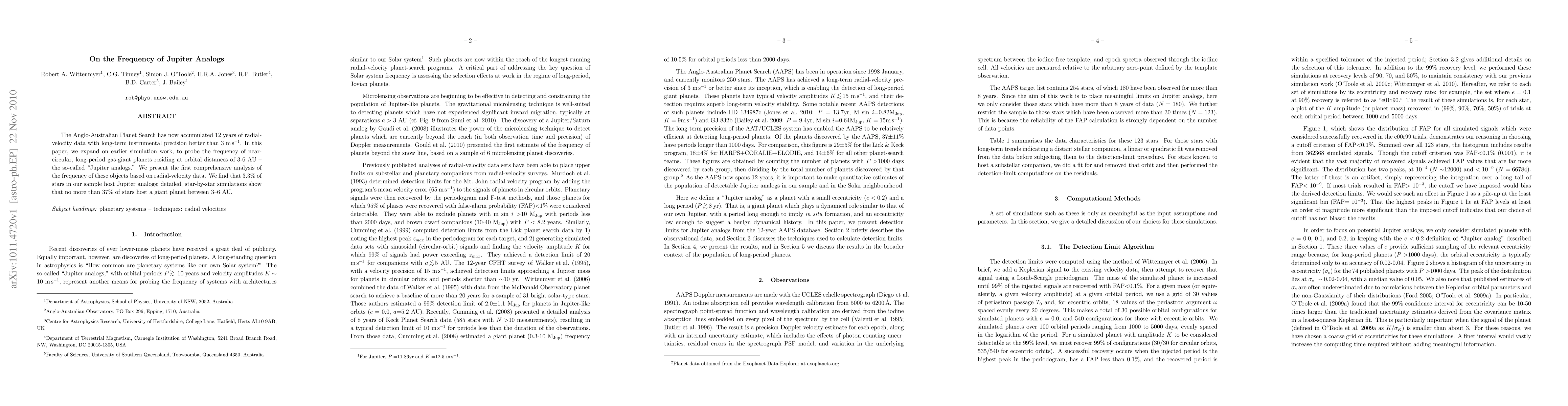The study found that 3.3% of stars host Jupiter analogs, which are near-circular planets at distances of 3-6 AU, and no more than 37% host giant planets in this range.