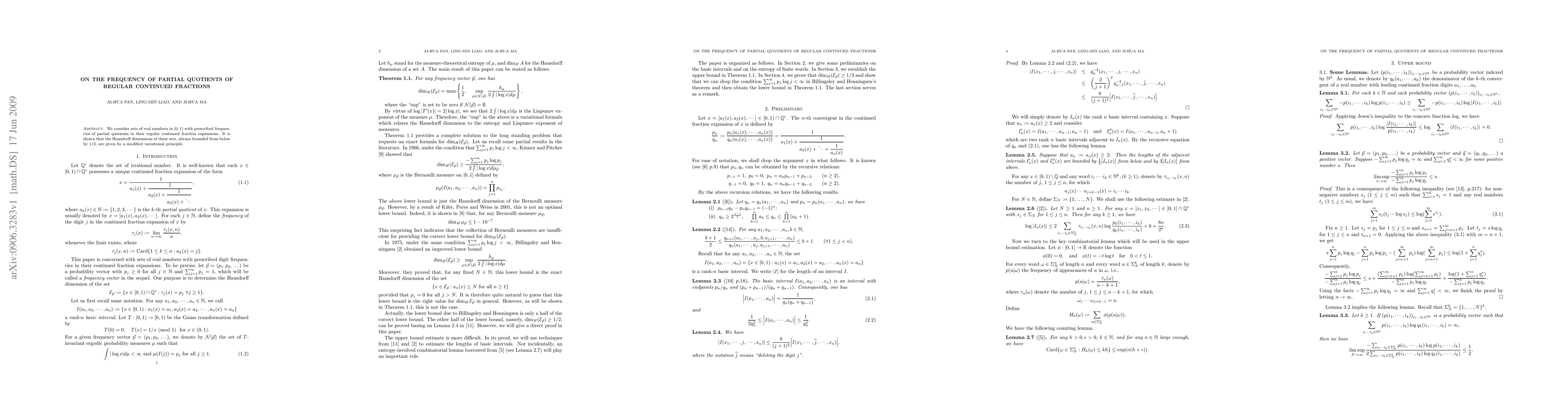 We consider sets of real numbers in $[0,1)$ with prescribed frequencies of partial quotients in their regular continued fraction expansions. It is shown that the Hausdorff dimensions of these sets, always bounded from below by $1/2$, are given by a modified variational principle.