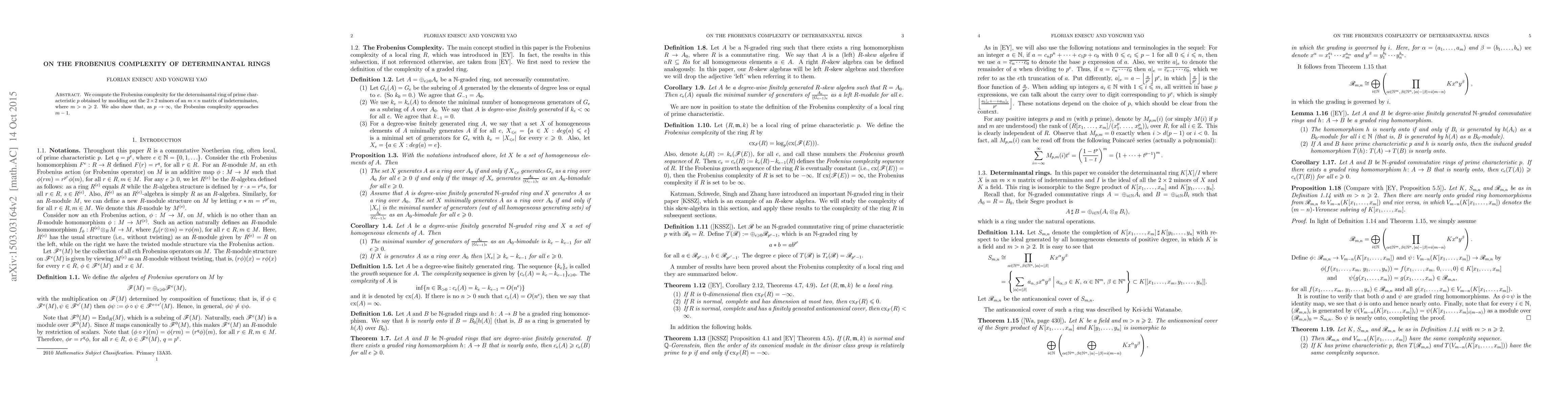 We compute the Frobenius complexity for the determinantal ring of prime characteristic $p$ obtained by modding out the $2 \times 2$ minors of an $m \times n$ matrix of indeterminates, where $m > n \ge 2$. We also show that, as $p \to \infty$, the Frobenius complexity approaches $m-1$.