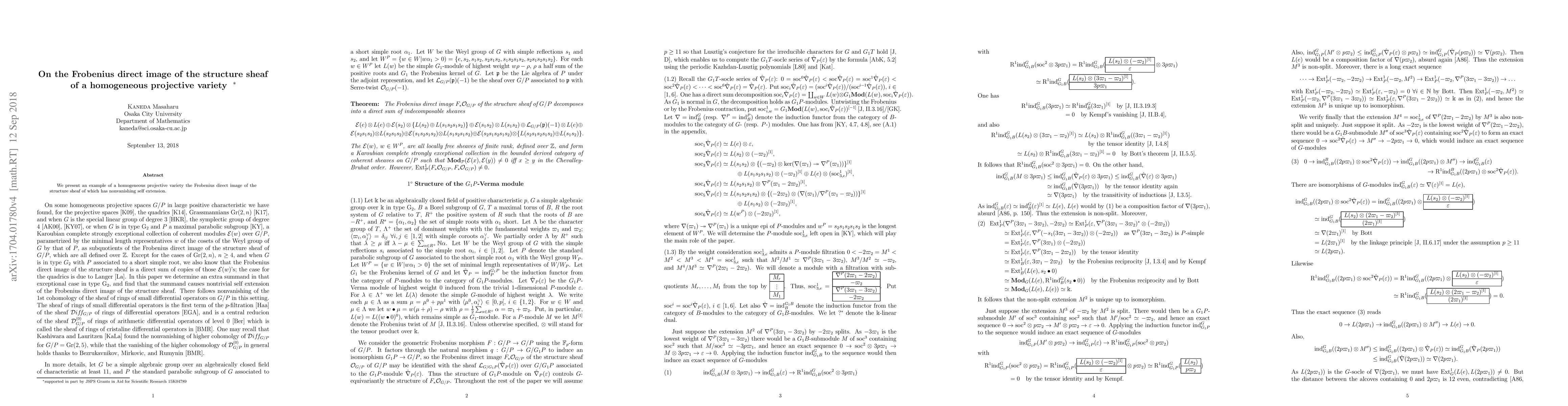 We present an example of a homogeneous projective variety the Frobenius direct image of the structure sheaf of which has nonvanishing self extension.