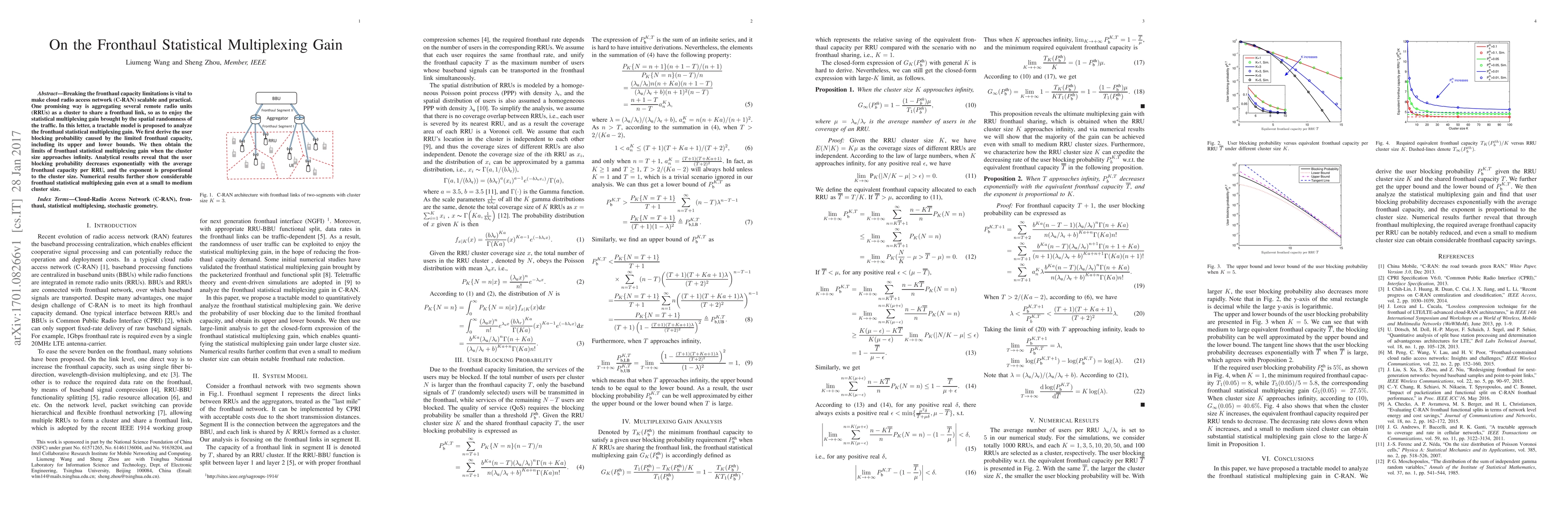 Breaking the fronthaul capacity limitations is vital to make cloud radio access network (C-RAN) scalable and practical. One promising way is aggregating several remote radio units (RRUs) as a cluster to share a fronthaul link, so as to enjoy the statistical multiplexing gain brought by the spatial randomness of the traffic. In this letter, a tractable model is proposed to analyze the fronthaul statistical multiplexing gain. We first derive the user blocking probability caused by the limited fronthaul capacity, including its upper and lower bounds. We then obtain the limits of fronthaul statistical multiplexing gain when the cluster size approaches infinity. Analytical results reveal that the user blocking probability decreases exponentially with the average fronthaul capacity per RRU, and the exponent is proportional to the cluster size. Numerical results further show considerable fronthaul statistical multiplexing gain even at a small to medium cluster size.
