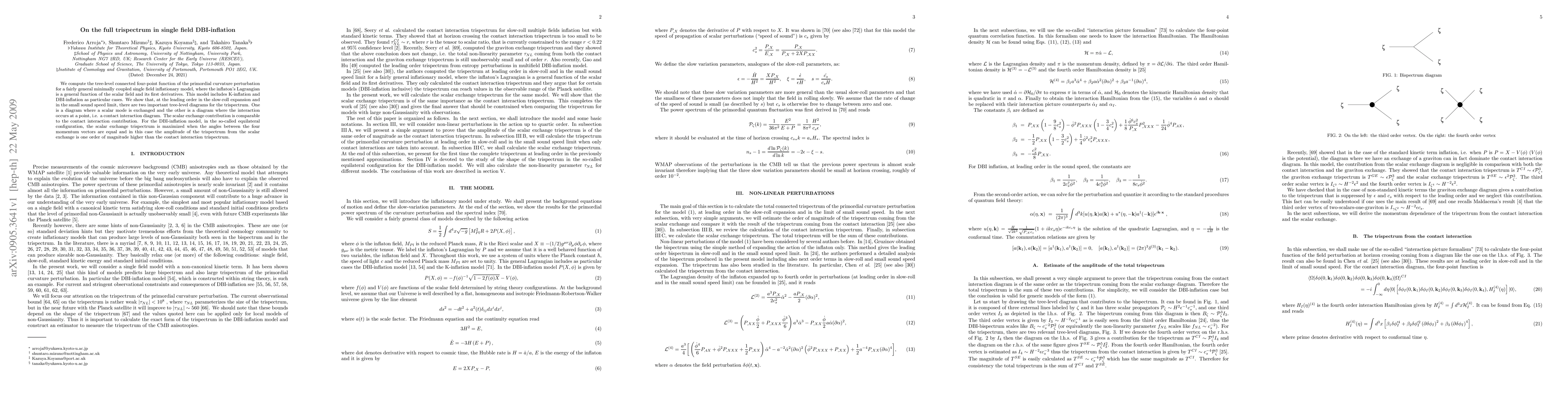 This paper calculates the full trispectrum for a general single field DBI-inflation model, identifying two significant tree-level contributions: scalar exchange and contact interactions. In DBI-inflation's equilateral configuration, the scalar exchange trispectrum dominates, being an order of magnitude larger than the contact interaction contribution.