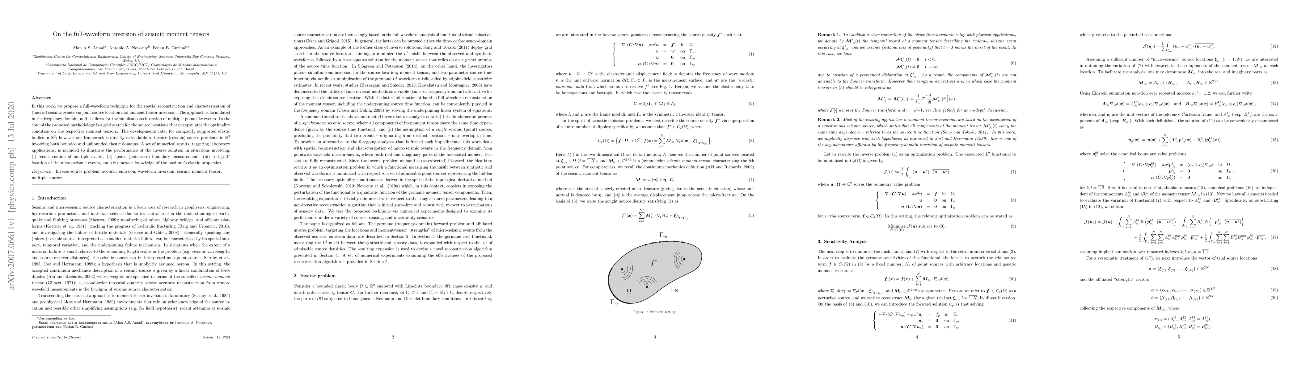 This paper introduces a full-waveform inversion technique for reconstructing and characterizing seismic events through joint source location and moment tensor inversion in the frequency domain. The method is extendable to both 2D and 3D elastic domains and demonstrates performance in scenarios involving multiple events, sparse boundary measurements, off-grid event locations, and uncertain elastic properties.