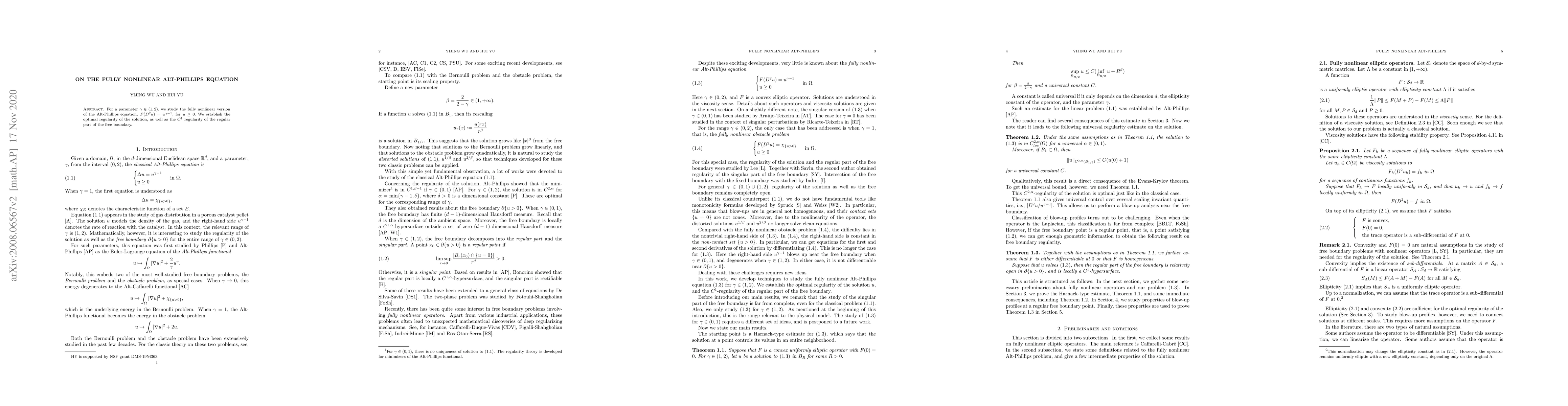 For a parameter $\gamma\in(1,2)$, we study the fully nonlinear version of the Alt-Phillips equation, $F(D^2u)=u^{\gamma-1}$, for $u\ge 0.$ We establish the optimal regularity of the solution, as well as the $C^1$ regularity of the regular part of the free boundary.