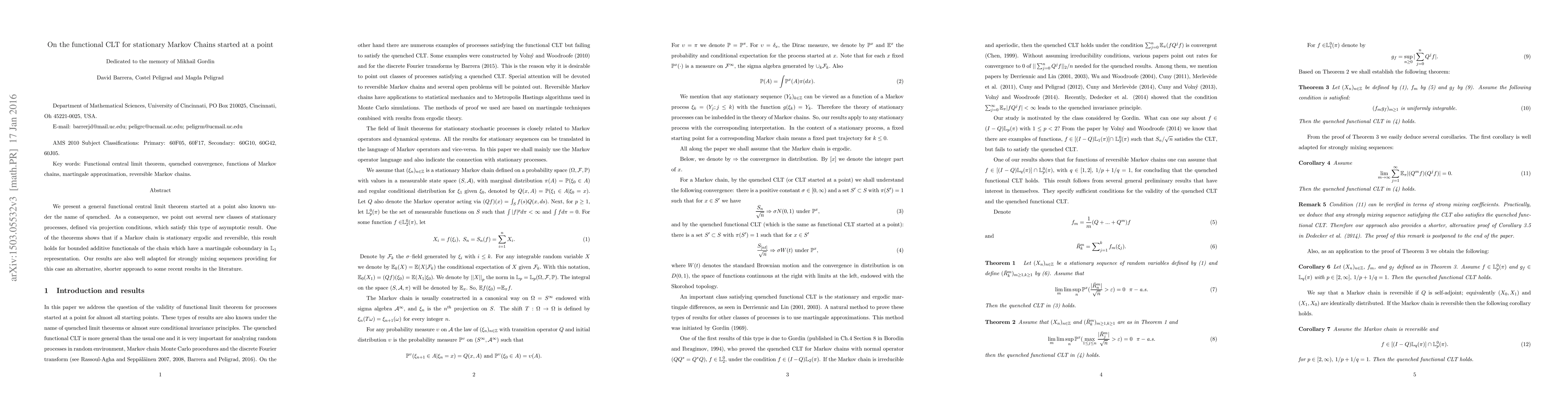 This paper presents a functional central limit theorem for stationary Markov chains started at a point, demonstrating new classes of stationary processes satisfying this result. It also provides a shorter approach for strongly mixing sequences, extending recent findings in the literature.
