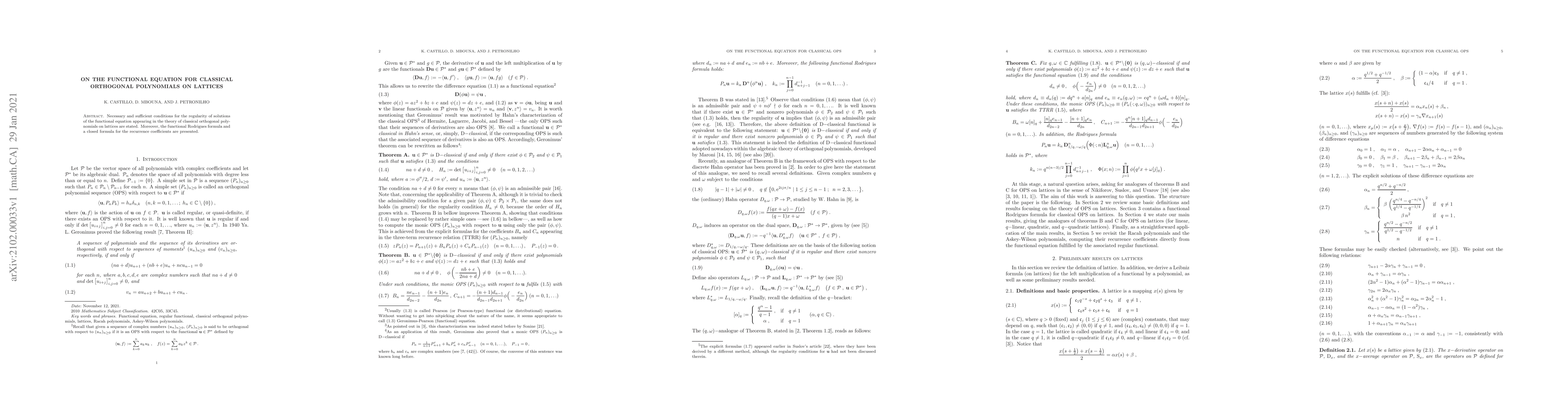This paper establishes necessary and sufficient conditions for the regularity of solutions to the functional equation in classical orthogonal polynomials on lattices. It also introduces the functional Rodrigues formula and provides a closed formula for the recurrence coefficients.