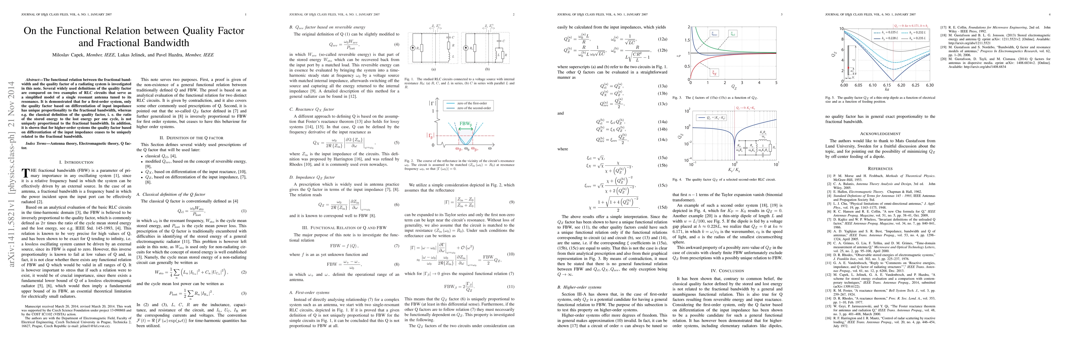 This paper investigates the relationship between the quality factor and fractional bandwidth in RLC circuits, finding that only the quality factor based on input impedance differentiation uniquely correlates with bandwidth in first-order systems. For higher-order systems, this unique proportionality no longer holds.