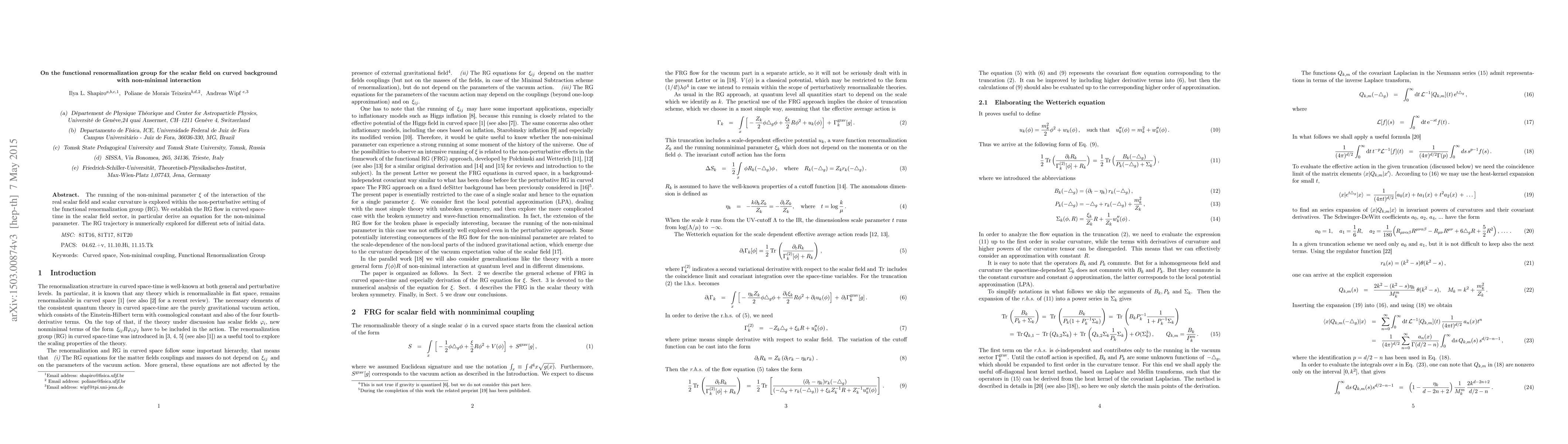 The running of the non-minimal parameter (\xi) of the interaction of the real scalar field and scalar curvature is explored within the non-perturbative setting of the functional renormalization group (RG). We establish the RG flow in curved space-time in the scalar field sector, in particular derive an equation for the non-minimal parameter. The RG trajectory is numerically explored for different sets of initial data.