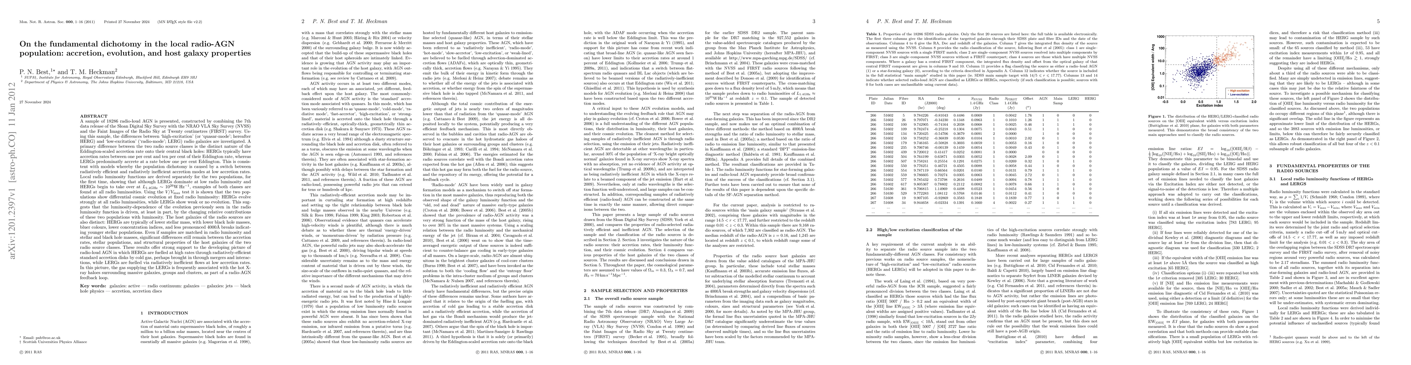 A sample of 18286 radio-loud AGN is presented, constructed by combining the SDSS DR7 with the NVSS and FIRST radio surveys. Using this sample, the differences between `high-excitation' (or `quasar-mode'; HERG) and `low-excitation' (`radio-mode'; LERG) radio galaxies are investigated. A primary difference is the distinct nature of the Eddington-scaled accretion rate onto their central black holes: HERGs typically have accretion rates between 1 and 10% of Eddington, whereas LERGs predominatly accrete at a rate below 1% Eddington. This is consistent with models where the population dichotomy is caused by a switch between radiatively efficient and inefficient accretion modes at low accretion rates. Local radio luminosity functions are derived separately for the two populations, showing that although LERGs dominate at low luminosity and HERGs above 1e26 W/Hz, examples of both classes are found at all radio luminosities. Using the V/Vmax test it is shown that the populations show differential cosmic evolution at fixed radio luminosity: HERGs evolve strongly at all luminosities, while LERGs show weak or no evolution. This suggests that the luminosity-dependent evolution of the radio luminosity function is driven, at least in part, by the changing relative contributions of these two populations with luminosity. The host galaxies of the sources are also distinct: HERGs are typically of lower stellar mass, with lower black hole masses, bluer colours and weaker 4000-Ang breaks indicating younger stellar populations. These results offer strong support to the picture in which HERGs are fuelled at high rates through radiative accretion disks by cold gas, perhaps from mergers and interactions, while LERGs are fuelled via radiatively inefficient flows at low accretion rates, often by gas associated with the hot X-ray haloes of their host galaxy/cluster, as part of a radio-AGN feedback loop (abridged).