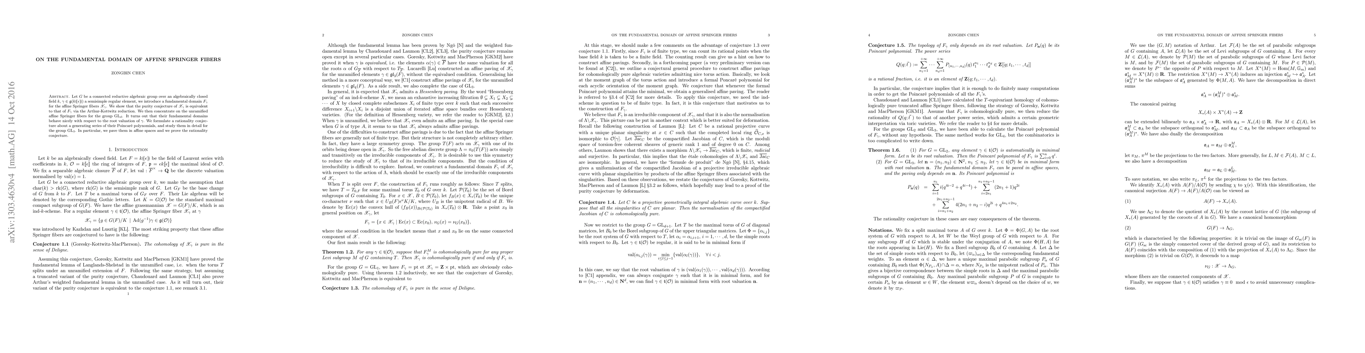 This paper introduces a fundamental domain for affine Springer fibers, named $F_{gamma}$, associated with a connected reductive group $G$ and a semisimple regular integral $gamma$. The authors propose an 'Arthur-Kottwitz reduction' to simplify the purity conjecture of $xx_{gamma}$. They demonstrate that these domains behave well in families for the unramified case and formulate a rationality conjecture about their Poincaré polynomials' generating series. The study focuses on $gl_{3}$, where they describe these domains as pavings in affine spaces, ultimately proving the rationality conjecture.