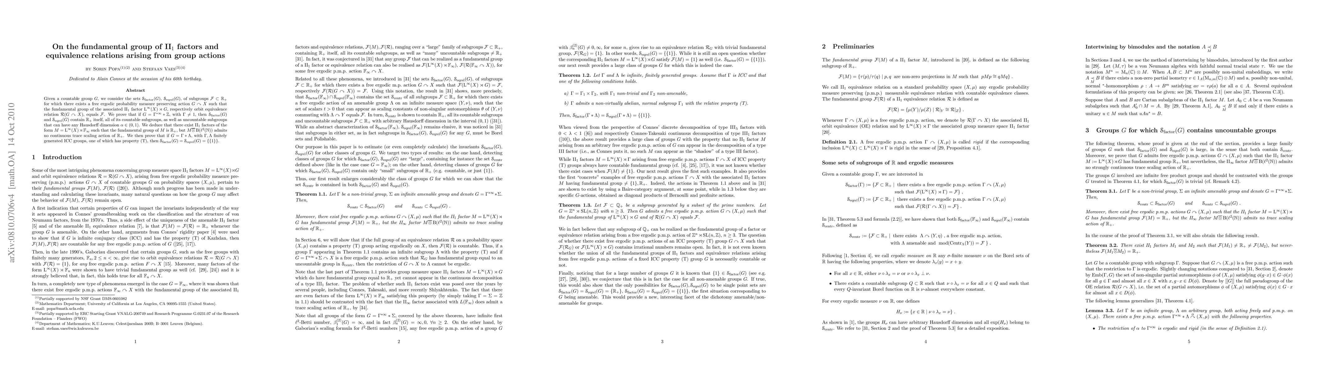 This paper investigates the fundamental groups of II_1 factors and orbit equivalence relations from group actions, proving that certain structures arise under specific group formations. It demonstrates that specific free product groups yield rich subgroups in S_factor(G) and S_eqrel(G), while groups with property (T) restrict these to trivial cases.