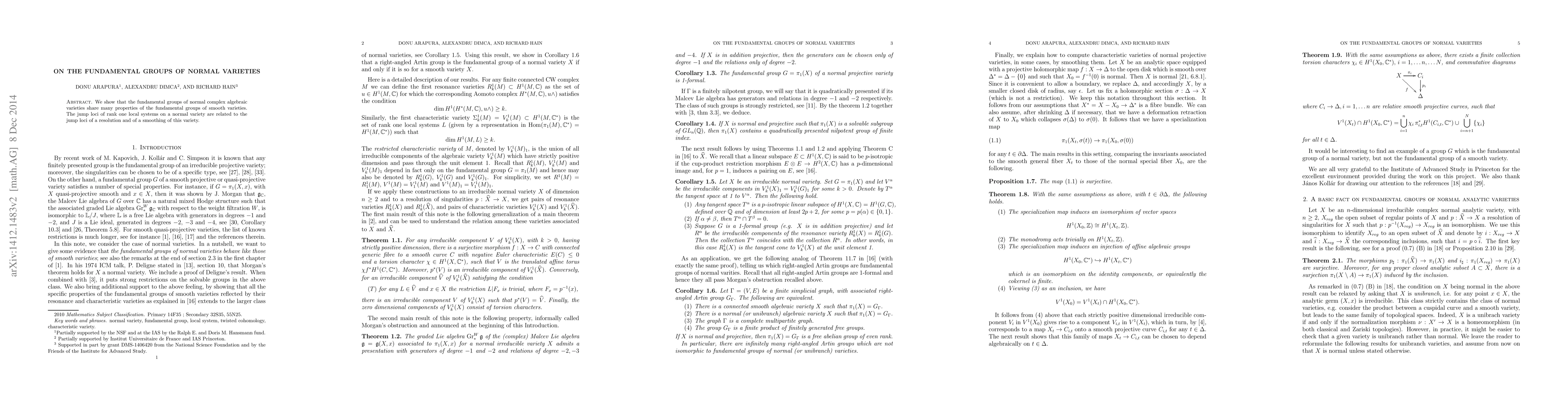 Summary: This paper demonstrates that the fundamental groups of normal complex algebraic varieties exhibit properties similar to those of smooth varieties, and explores the relationship between the jump loci of rank one local systems on normal varieties and those of their resolutions and smoothings.