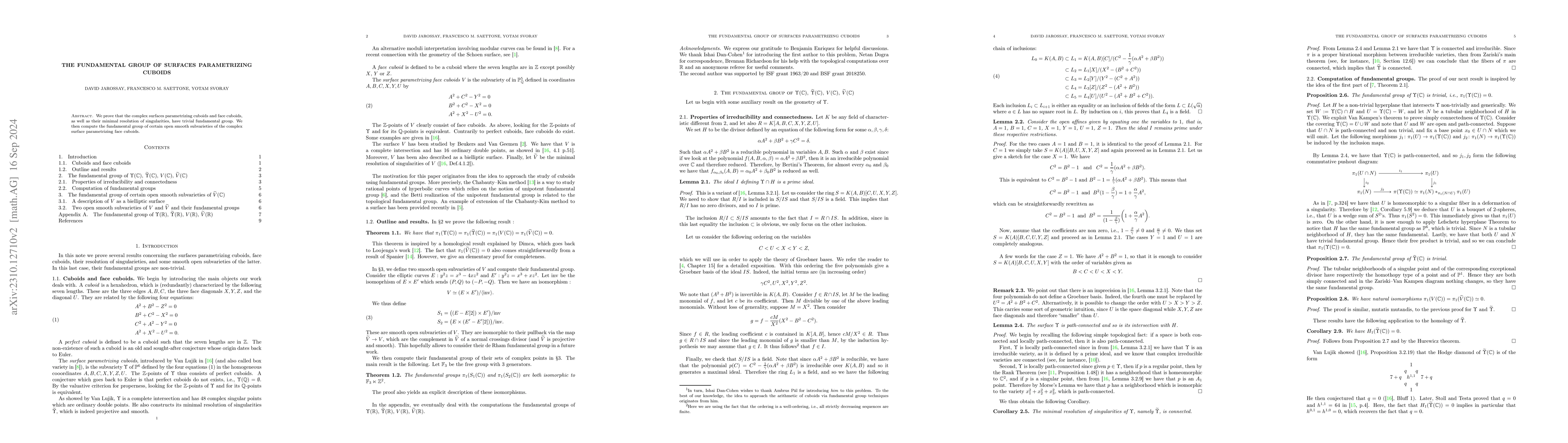 This paper proves that the surface parametrizing cuboids and its resolution of singularities have a trivial fundamental group, but the surface minus the degenerate cuboids divisor has a non-abelian fundamental group. It also examines the analogous fundamental groups of the surface of face cuboids.