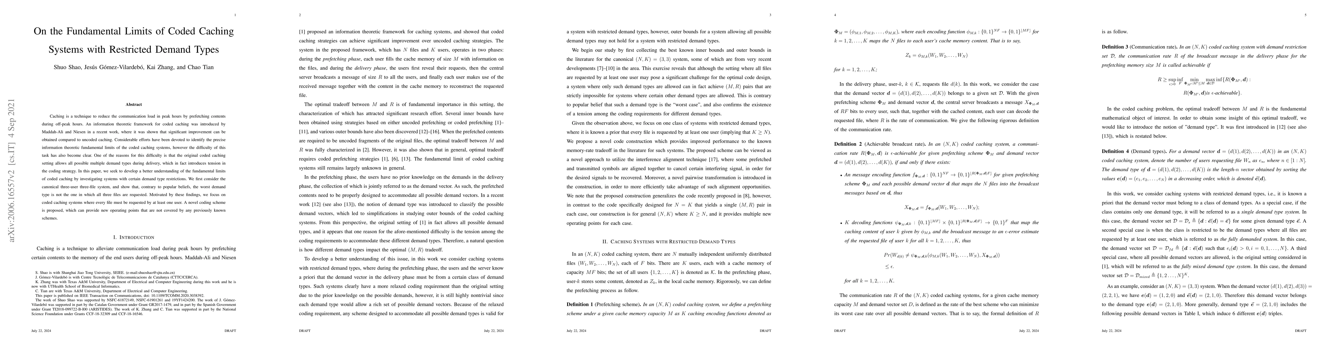 This paper explores the fundamental limits of coded caching systems with restricted demand types, demonstrating that the worst-case scenario does not occur when all files are requested simultaneously. It proposes a novel coding scheme for systems where each file must be requested by at least one user, revealing new operating points unattainable by existing methods.