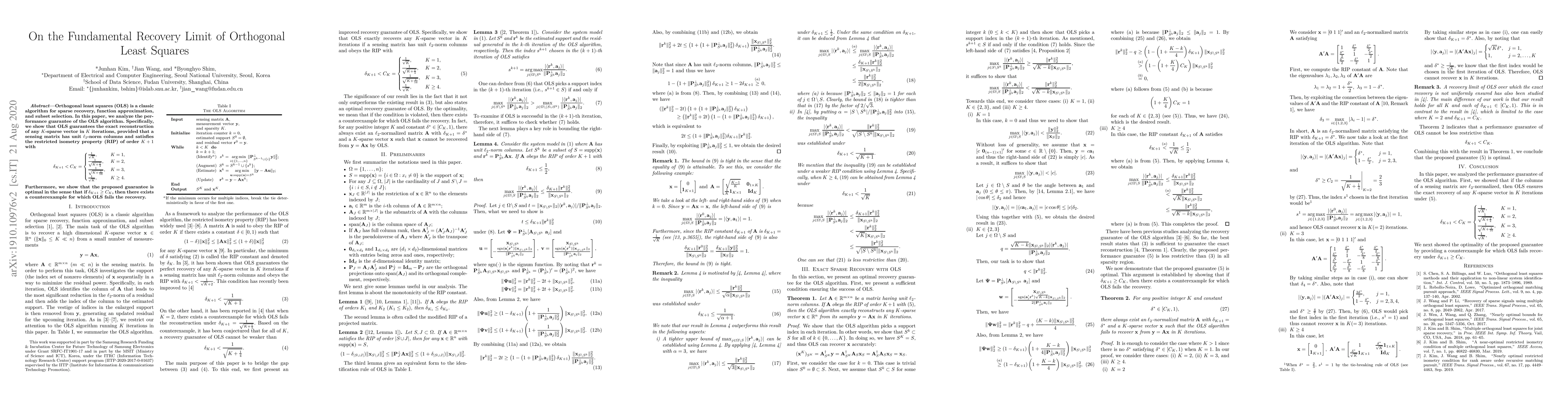 performance guarantee of the OLS algorithm. Specifically, we show that OLS