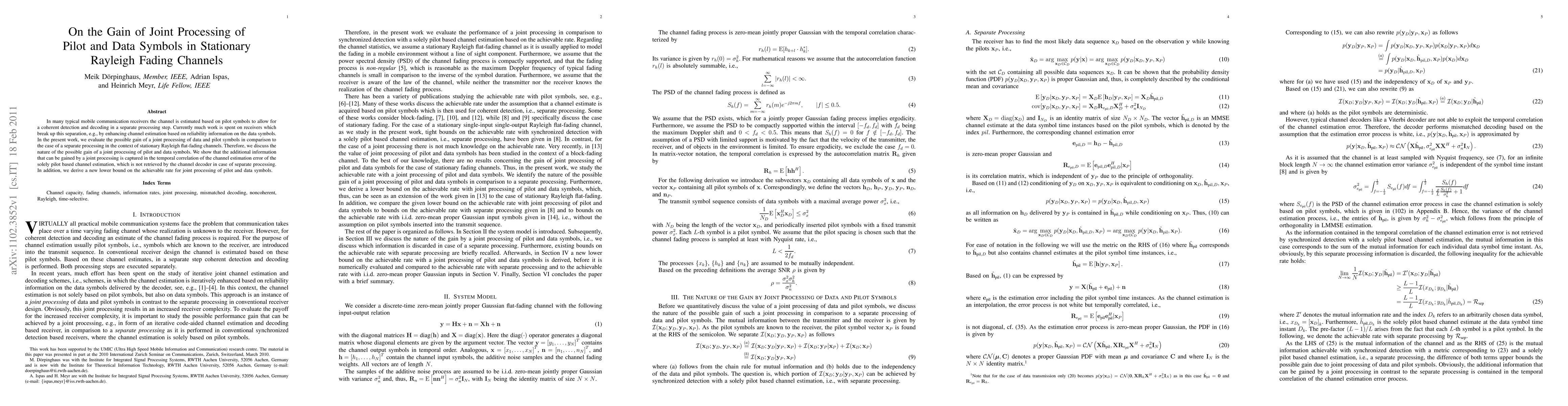 This paper evaluates the benefits of jointly processing pilot and data symbols in stationary Rayleigh fading channels, demonstrating that such integration can improve channel estimation and decoding performance by utilizing temporal correlation of the channel estimation error, which is otherwise lost in separate processing. A new lower bound on the achievable rate for joint processing is also derived.