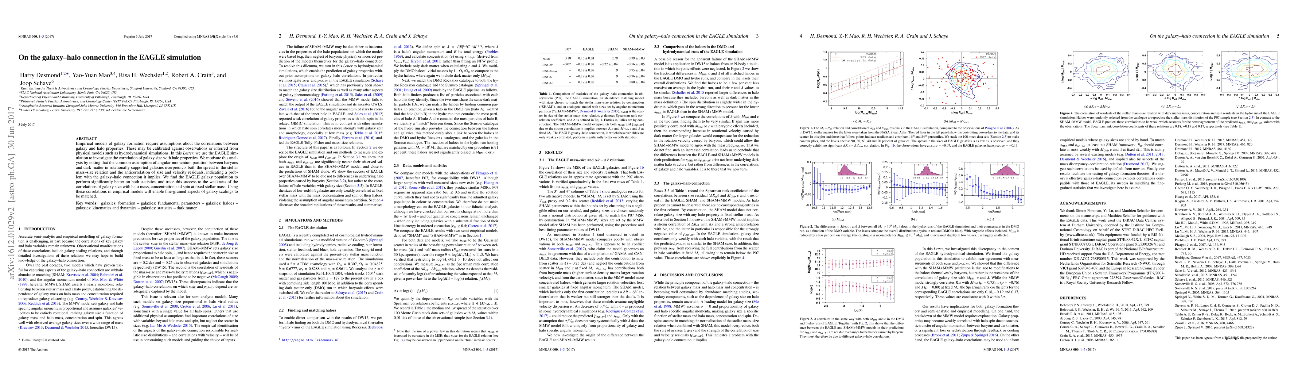 This paper uses the EAGLE simulation to explore the galaxy-halo connection, finding that the simulation's galaxy population better matches observed galaxy size-stellar mass relations and velocity residuals. The success is attributed to weaker correlations between galaxy size and halo properties like mass, concentration, and spin at fixed stellar mass.