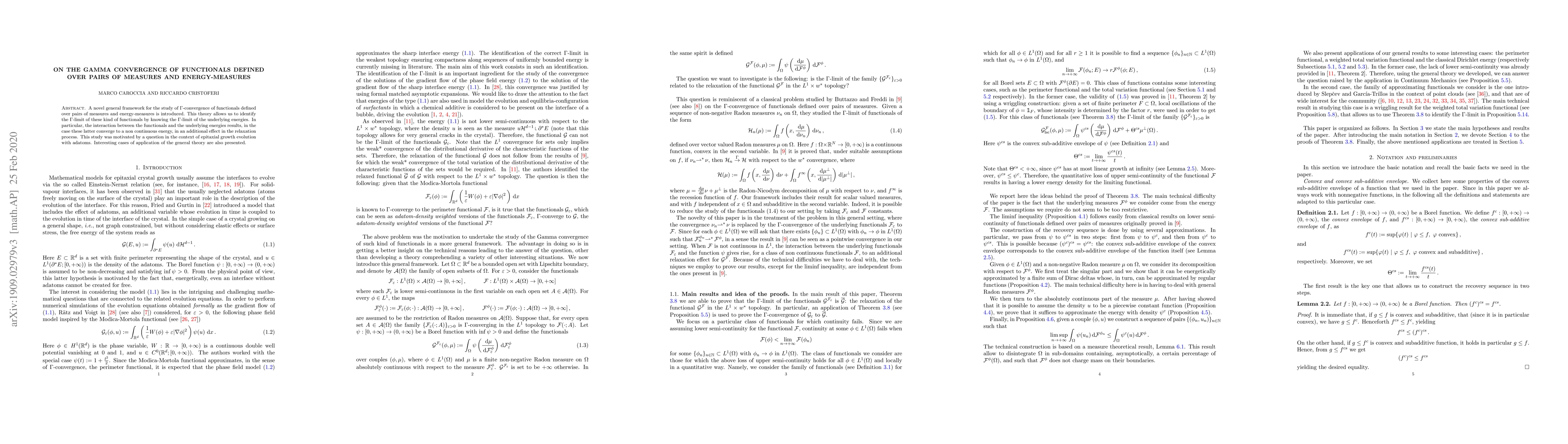 A novel general framework for the study of $\Gamma$-convergence of functionals defined over pairs of measures and energy-measures is introduced. This theory allows us to identify the $\Gamma$-limit of these kind of functionals by knowing the $\Gamma$-limit of the underlining energies. In particular, the interaction between the functionals and the underlining energies results, in the case these latter converge to a non continuous energy, in an additional effect in the relaxation process. This study was motivated by a question in the context of epitaxial growth evolution with adatoms. Interesting cases of application of the general theory are also presented.