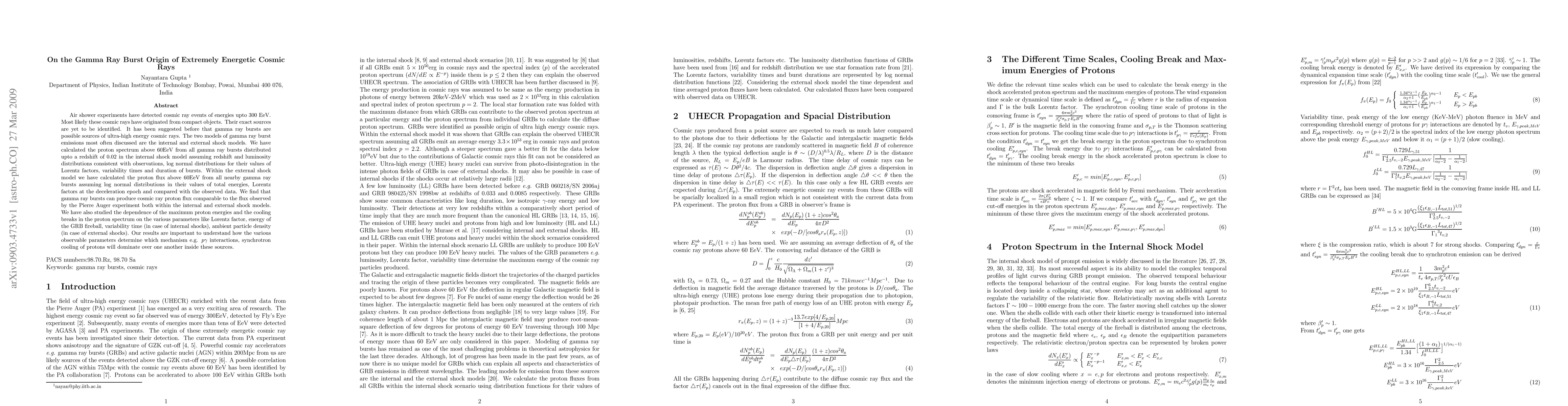 This paper investigates the potential of gamma ray bursts (GRBs) as sources of ultra-high energy cosmic rays (UHECRs) using internal and external shock models. The study finds that both models can produce cosmic ray proton flux comparable to observations, highlighting the role of parameters like Lorentz factor and ambient particle density in the energy and cooling mechanisms of these cosmic rays.