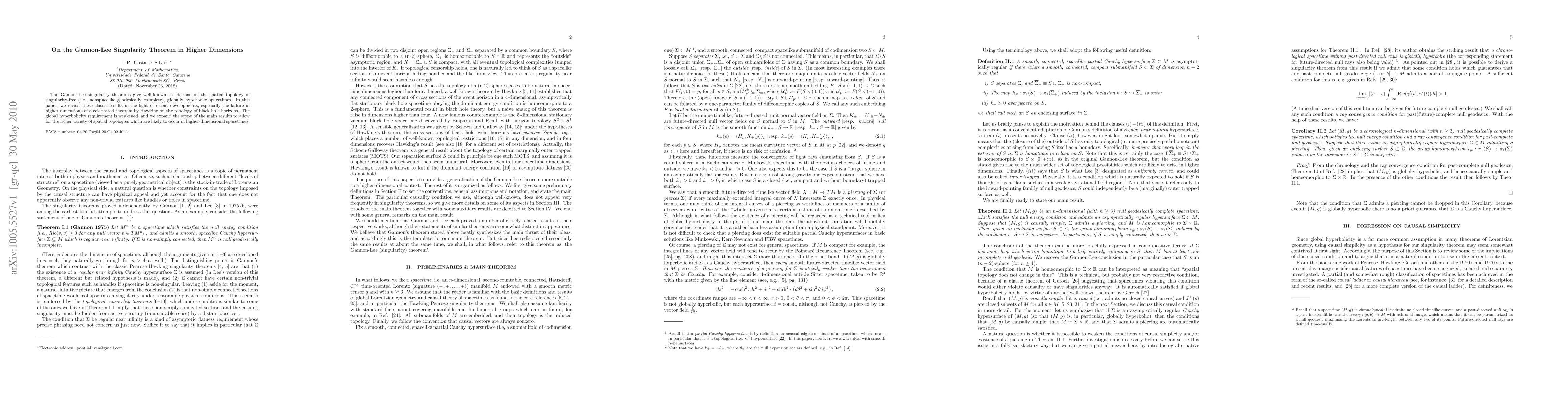 The Gannon-Lee singularity theorems give well-known restrictions on the spatial topology of singularity-free (i.e., nonspacelike geodesically complete), globally hyperbolic spacetimes. In this paper, we revisit these classic results in the light of recent developments, especially the failure in higher dimensions of a celebrated theorem by Hawking on the topology of black hole horizons. The global hyperbolicity requirement is weakened, and we expand the scope of the main results to allow for the richer variety of spatial topologies which are likely to occur in higher-dimensional spacetimes.
