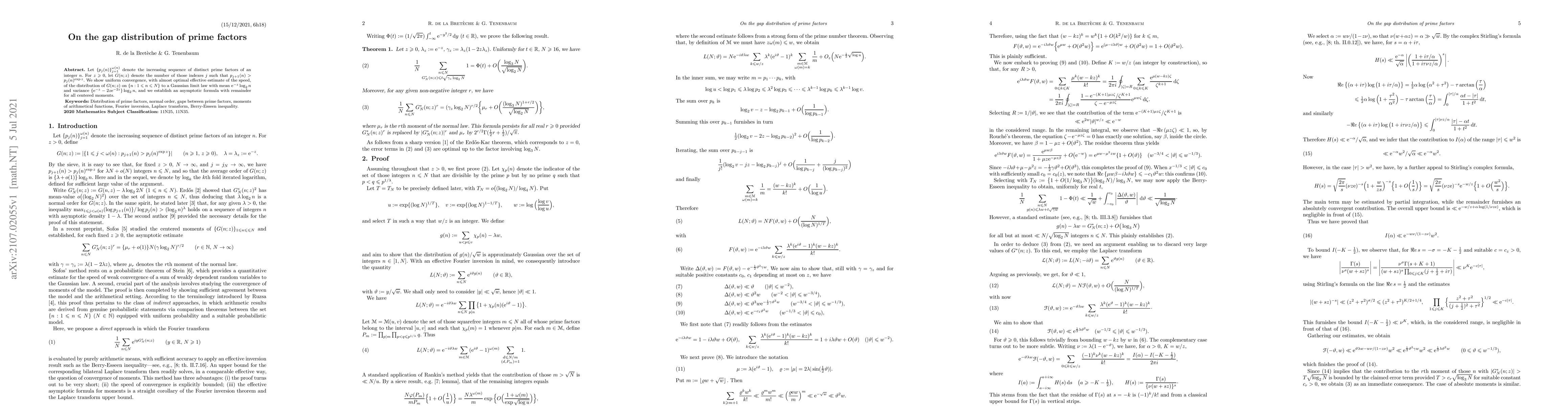 The paper studies the distribution of prime factors in integers and finds uniform convergence to a Gaussian limit law, with an almost optimal estimate of its speed.