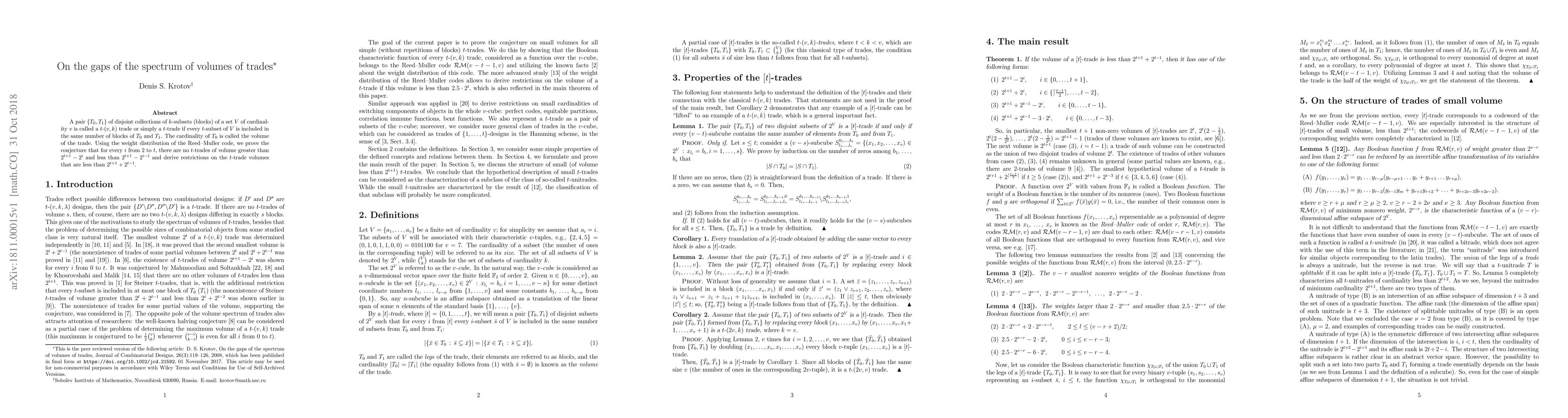 A pair $\{T_0,T_1\}$ of disjoint collections of $k$-subsets (blocks) of a set $V$ of cardinality $v$ is called a $t$-$(v,k)$ trade or simply a $t$-trade if every $t$-subset of $V$ is included in the same number of blocks of $T_0$ and $T_1$. The cardinality of $T_0$ is called the volume of the trade. Using the weight distribution of the Reed--Muller code, we prove the conjecture that for every $i$ from $2$ to $t$, there are no $t$-trades of volume greater than $2^{t+1}-2^i$ and less than $2^{t+1}-2^{i-1}$ and derive restrictions on the $t$-trade volumes that are less than $2^{t+1}+2^{t-1}$.