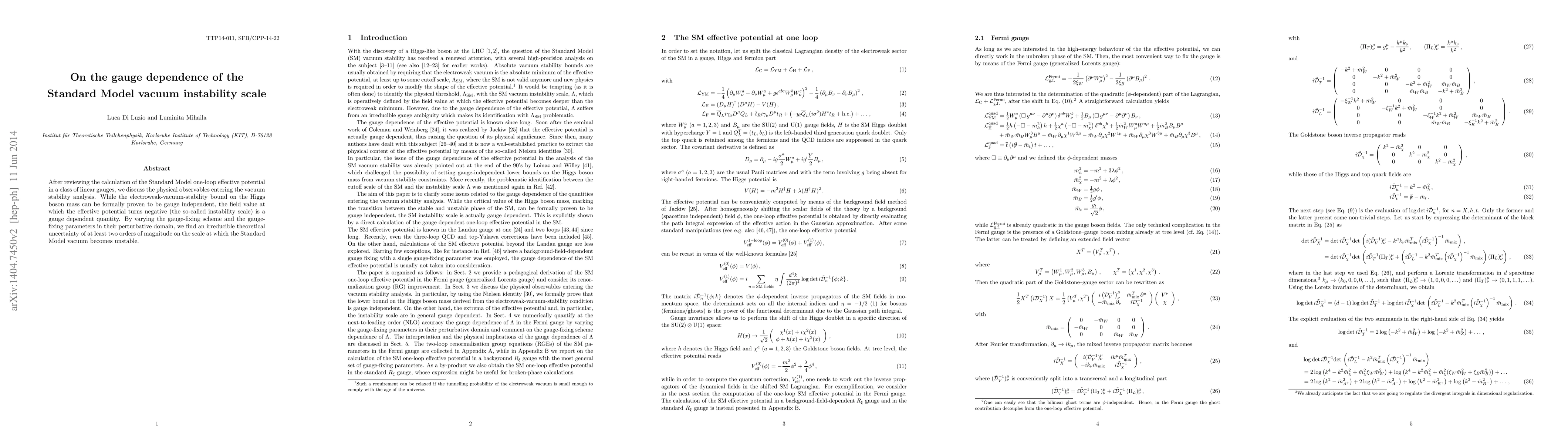 After reviewing the calculation of the Standard Model one-loop effective potential in a class of linear gauges, we discuss the physical observables entering the vacuum stability analysis. While the electroweak-vacuum-stability bound on the Higgs boson mass can be formally proven to be gauge independent, the field value at which the effective potential turns negative (the so-called instability scale) is a gauge dependent quantity. By varying the gauge-fixing scheme and the gauge-fixing parameters in their perturbative domain, we find an irreducible theoretical uncertainty of at least two orders of magnitude on the scale at which the Standard Model vacuum becomes unstable.