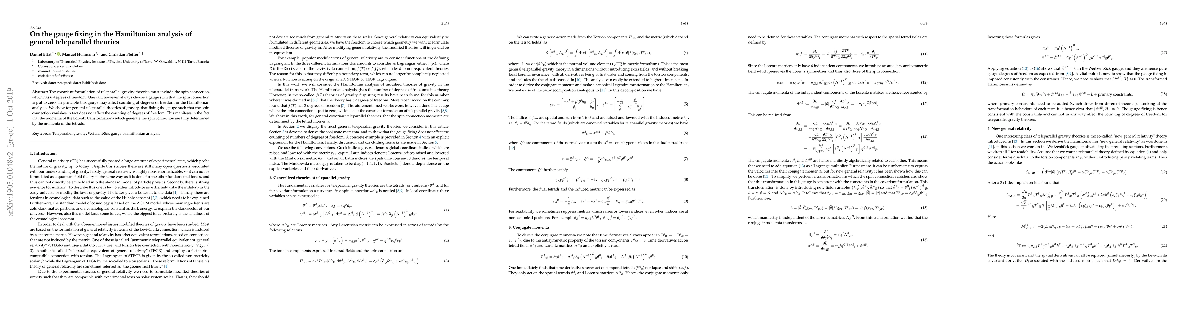 This paper demonstrates that in general teleparallel gravity theories, fixing the gauge to zero spin connection does not alter the count of degrees of freedom in the Hamiltonian analysis. The momenta associated with Lorentz transformations, which generate the spin connection, are entirely determined by the tetrads' momenta.