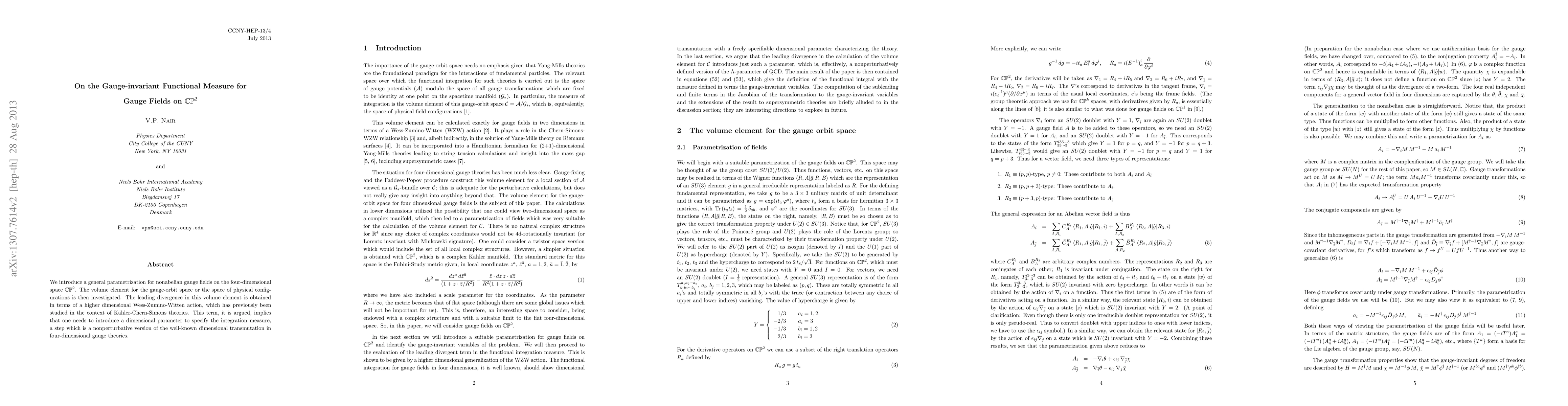 This paper introduces a parametrization for nonabelian gauge fields on CP^2, finding that the volume element requires a higher-dimensional Wess-Zumino-Witten action with a dimensional parameter to specify the integration measure.