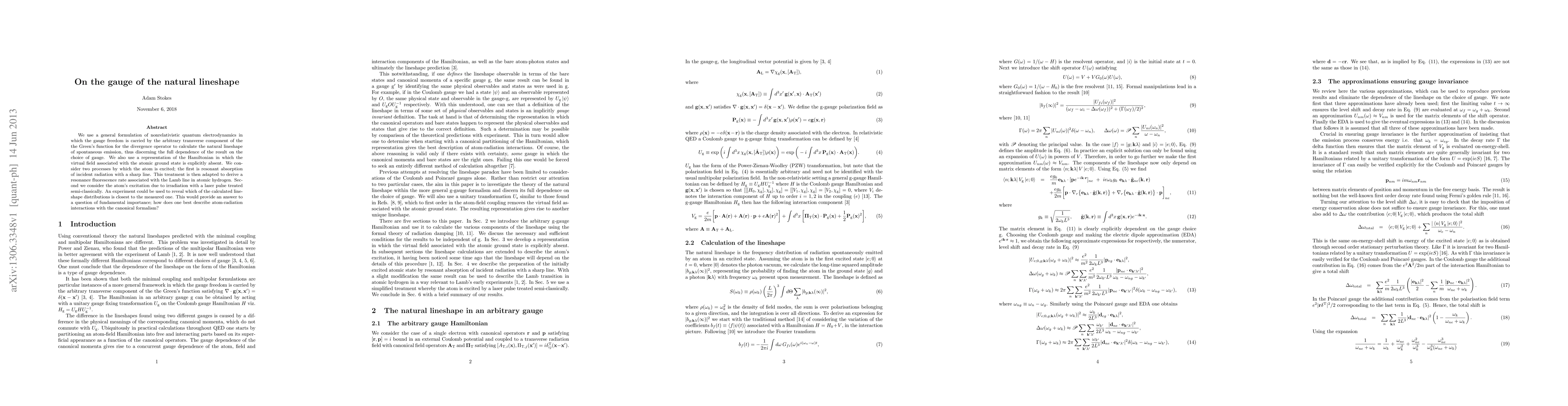We use a general formulation of nonrelativistic quantum electrodynamics in which the gauge freedom is carried by the arbitrary transverse component of the the Green's function for the divergence operator to calculate the natural lineshape of spontaneous emission, thus discerning the full dependence of the result on the choice of gauge. We also use a representation of the Hamiltonian in which the virtual field associated with the atomic ground state is explicitly absent. We consider two processes by which the atom is excited; the first is resonant absorption of incident radiation with a sharp line. This treatment is then adapted to derive a resonance fluorescence rate associated with the Lamb line in atomic hydrogen. Second we consider the atom's excitation due to irradiation with a laser pulse treated semi-classically. An experiment could be used to reveal which of the calculated lineshape distributions is closest to the measured one. This would provide an answer to a question of fundamental importance; how does one best describe atom-radiation interactions with the canonical formalism?
