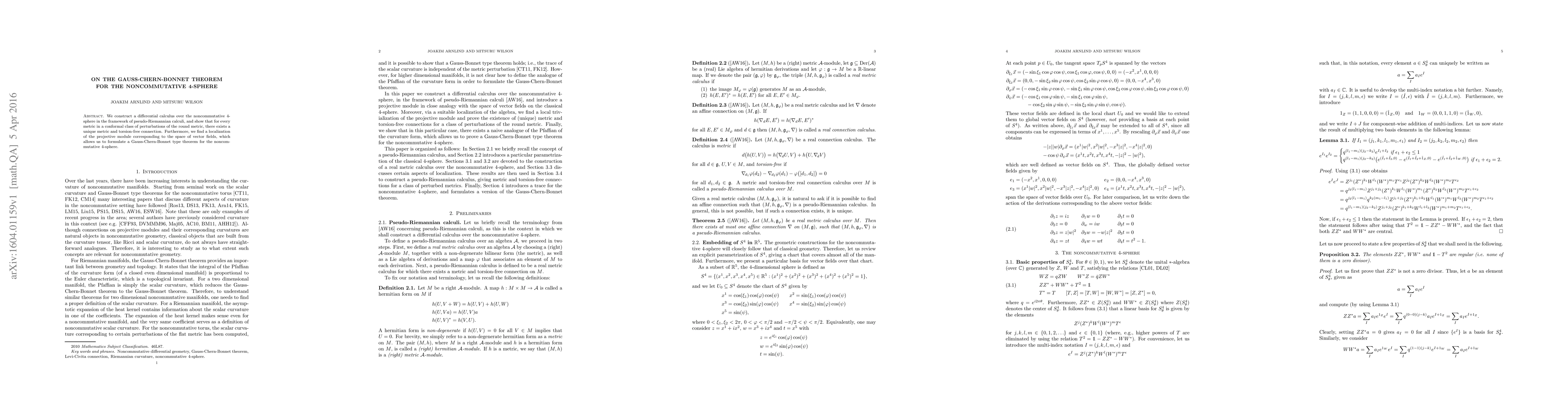 This work contributes to the understanding of noncommutative geometry by establishing a Gauss-Chern-Bonnet theorem for the noncommutative 4-sphere, which links topological invariants with curvature properties in a noncommutative setting.