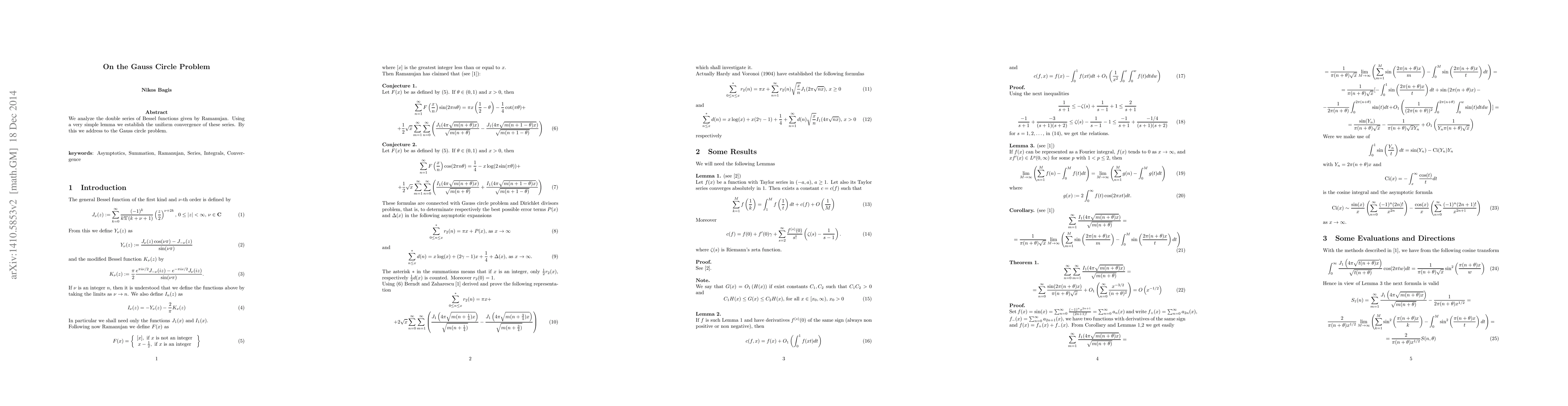 Summary: This paper analyzes Ramanujan's double series of Bessel functions and establishes their uniform convergence using a straightforward lemma, thereby addressing the Gauss circle problem.