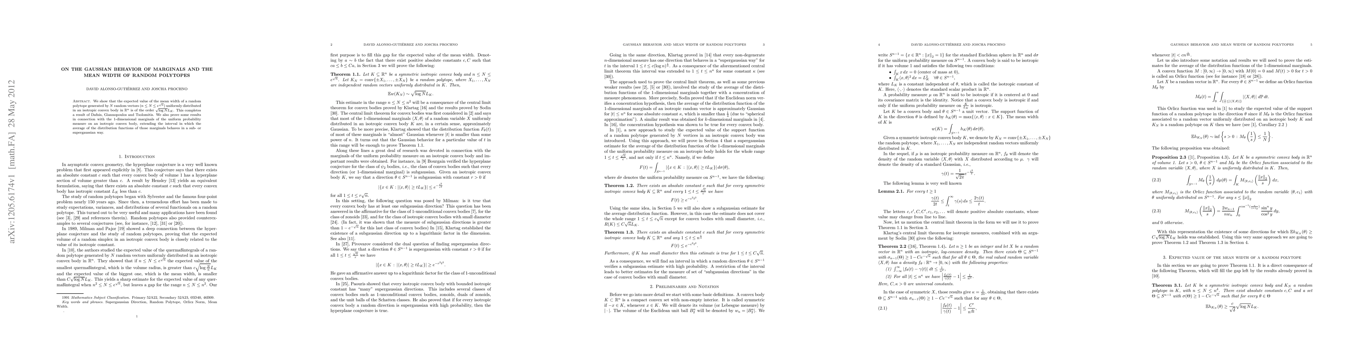 This paper demonstrates that the expected mean width of a random polytope generated by $N$ random vectors in $\R^n$ follows an order of $\sqrt{\log N} L_K$, completing a result by Dafnis, Giannopoulos, and Tsolomitis. It also extends the interval where the average of the distribution functions of 1-dimensional marginals behaves sub- or super-Gaussian.