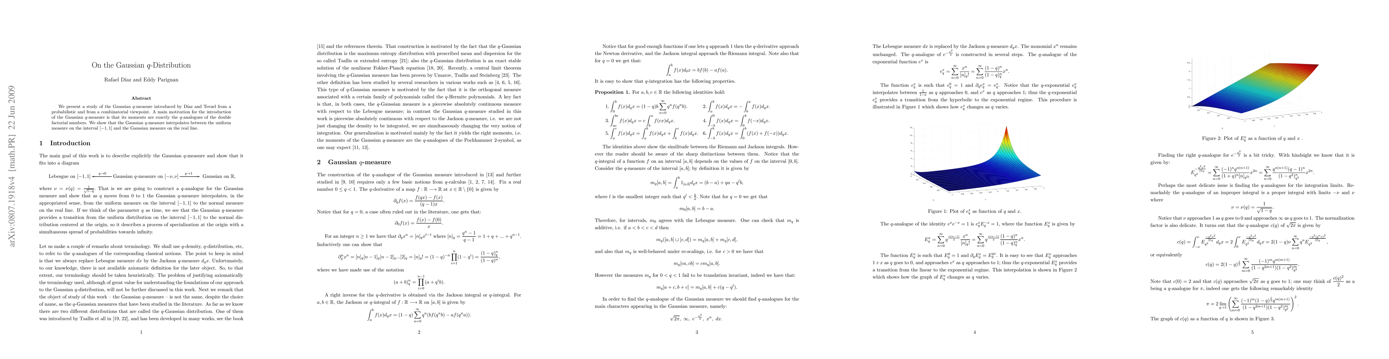 The paper studies the Gaussian q-Distribution, showing it interpolates between uniform and Gaussian measures, with its moments mirroring double factorial numbers.