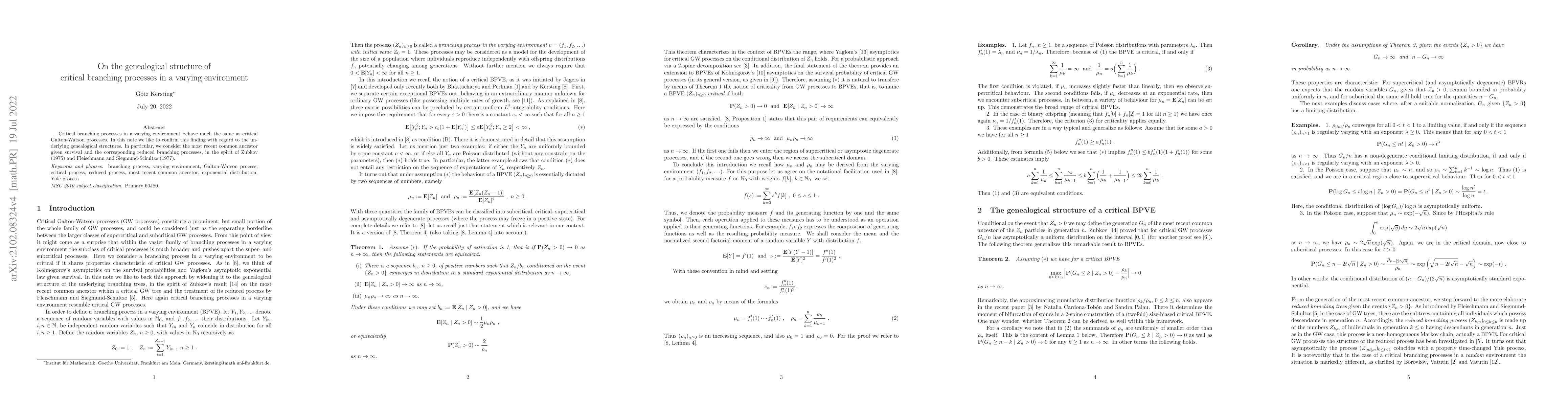This paper investigates the genealogical structure of critical branching processes in a varying environment, confirming that their behavior aligns with critical Galton-Watson processes, particularly in terms of the most recent common ancestor and reduced branching processes.