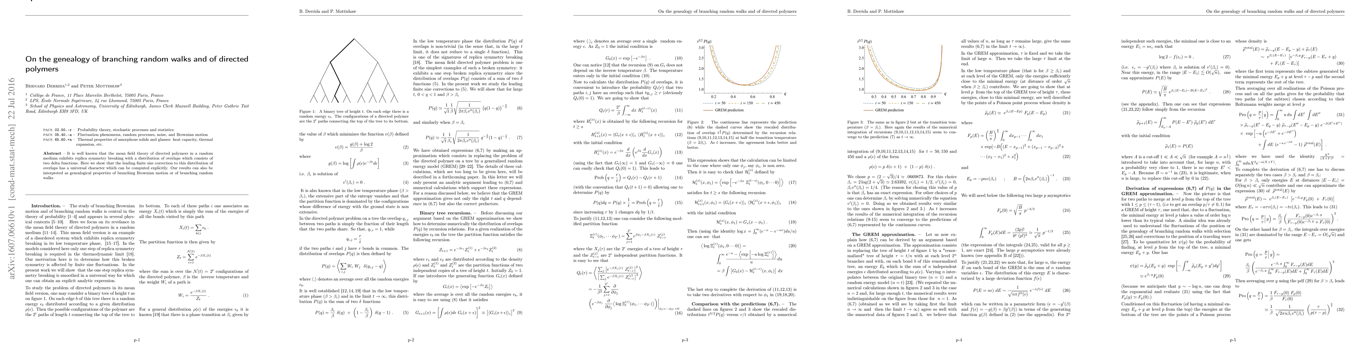 This paper explores the replica symmetry breaking in directed polymers and reveals a universal leading finite size correction for the distribution of overlaps. It also interprets these findings in terms of genealogical properties of branching Brownian motion and branching random walks.