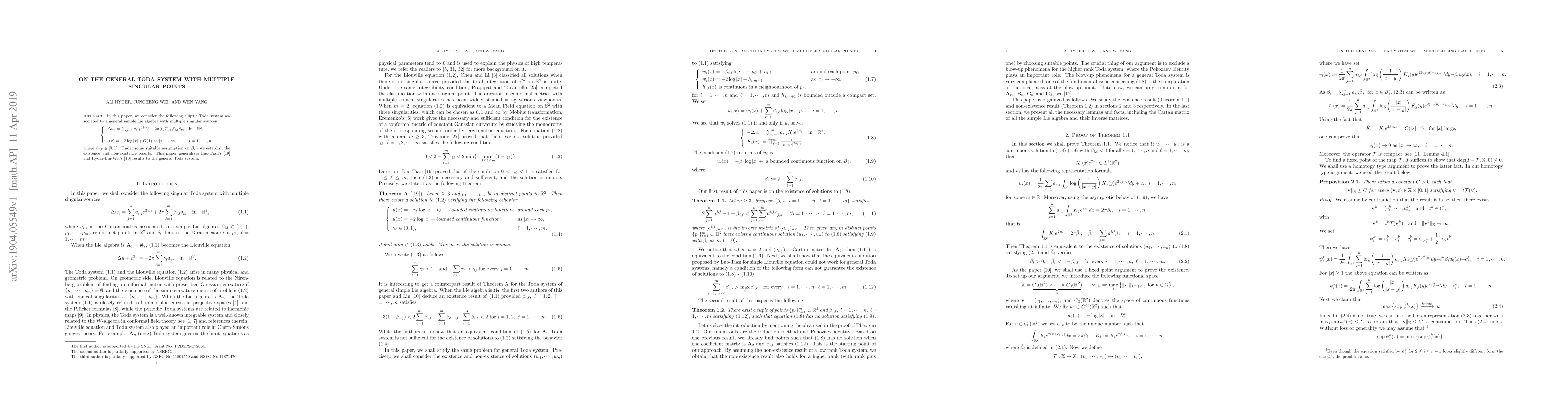This paper investigates a general Toda system with multiple singular points, establishing existence and non-existence results under certain assumptions on the parameters. It generalizes previous findings to this broader system, advancing understanding of its behavior.