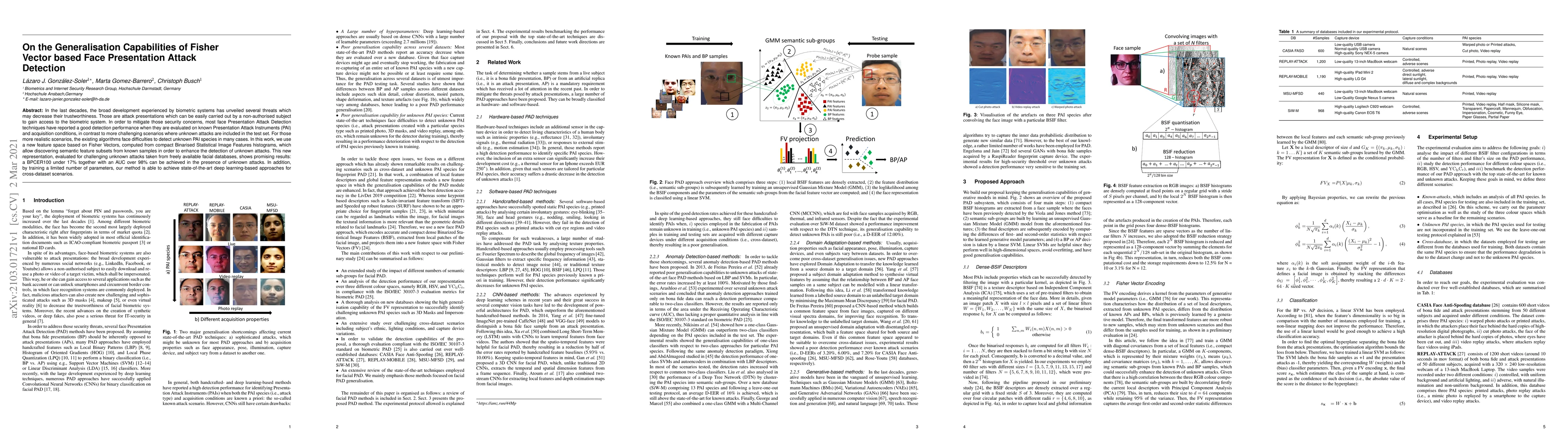 This paper proposes a novel Fisher Vector-based feature space for detecting unknown face presentation attacks, achieving a BPCER100 under 17% and an AUC over 98% in challenging scenarios with unknown attack types. The method demonstrates strong generalization capabilities and outperforms deep learning-based approaches in cross-dataset settings.