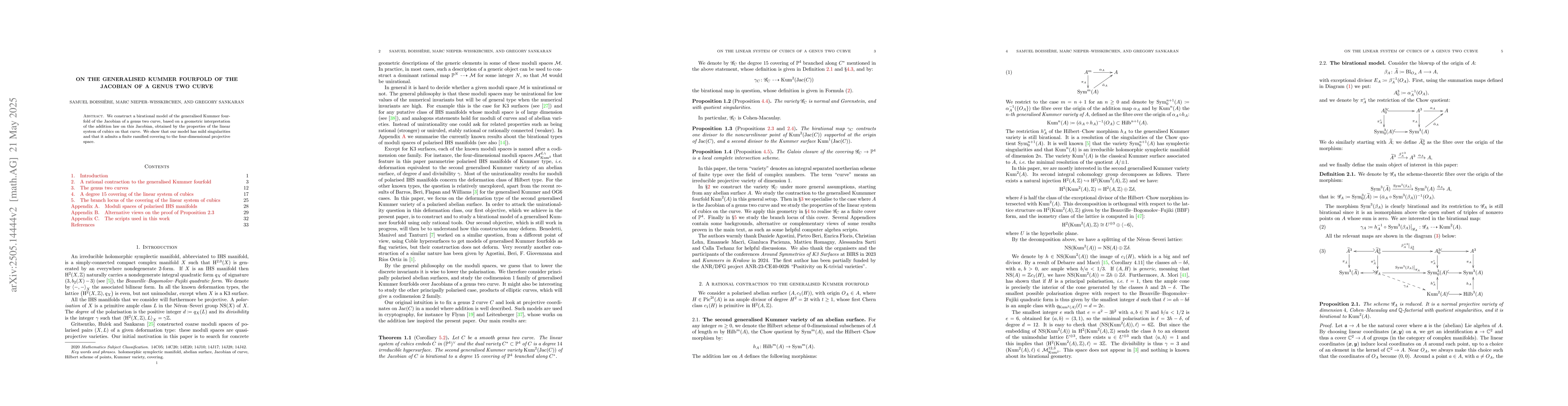 The research constructs a birational model of the generalised Kummer fourfold of the Jacobian of a genus two curve, utilizing a geometric interpretation of the addition law on this Jacobian derived from the linear system of cubics on the curve.